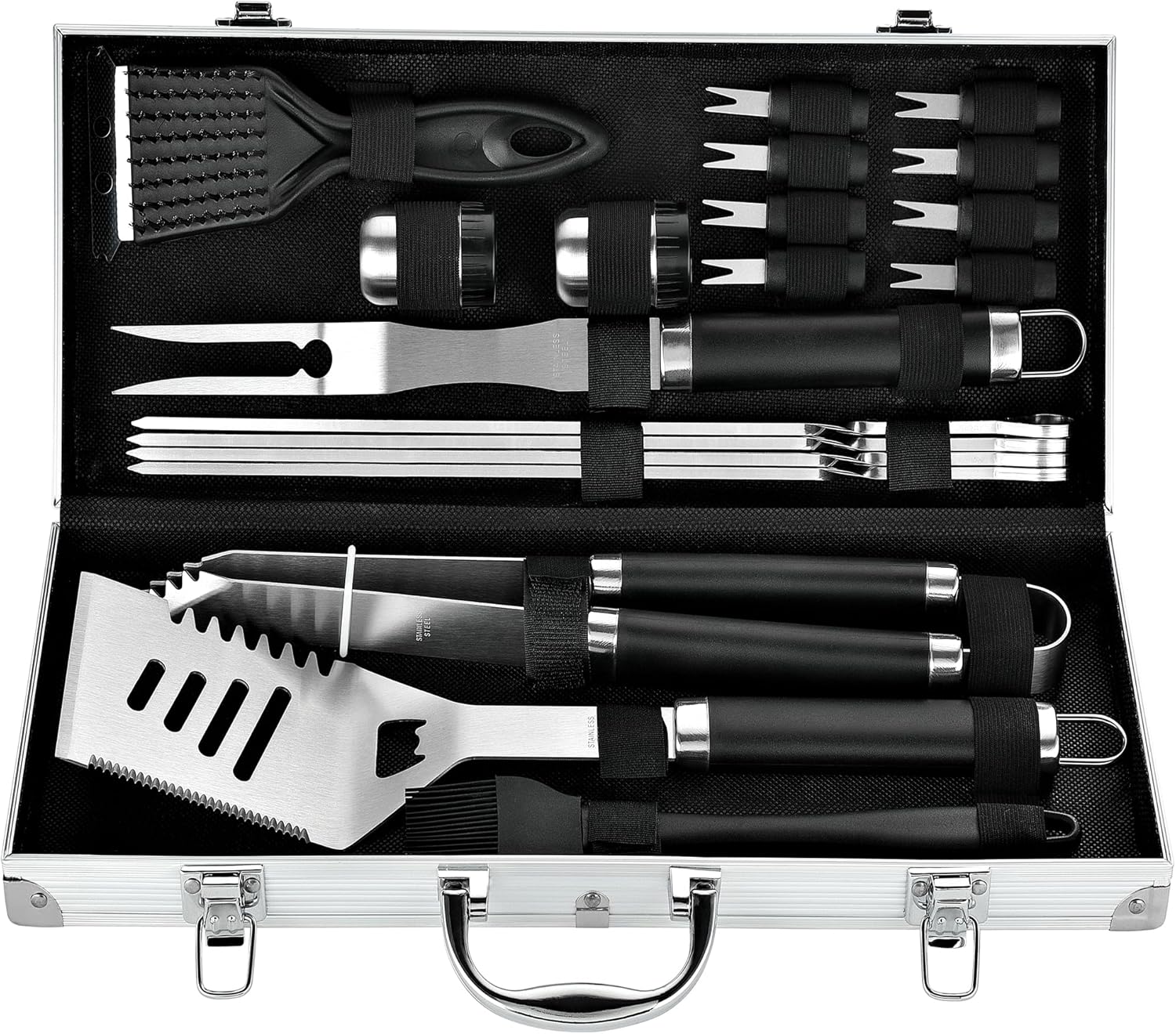 ROMANTICIST 20pcs Heavy Duty BBQ Grill Tool Set in Case - The Very Best Grill Gift for Father's Day and Christmas - Professional BBQ Accessories Set for Outdoor Cooking Camping Grilling Smoking, Black