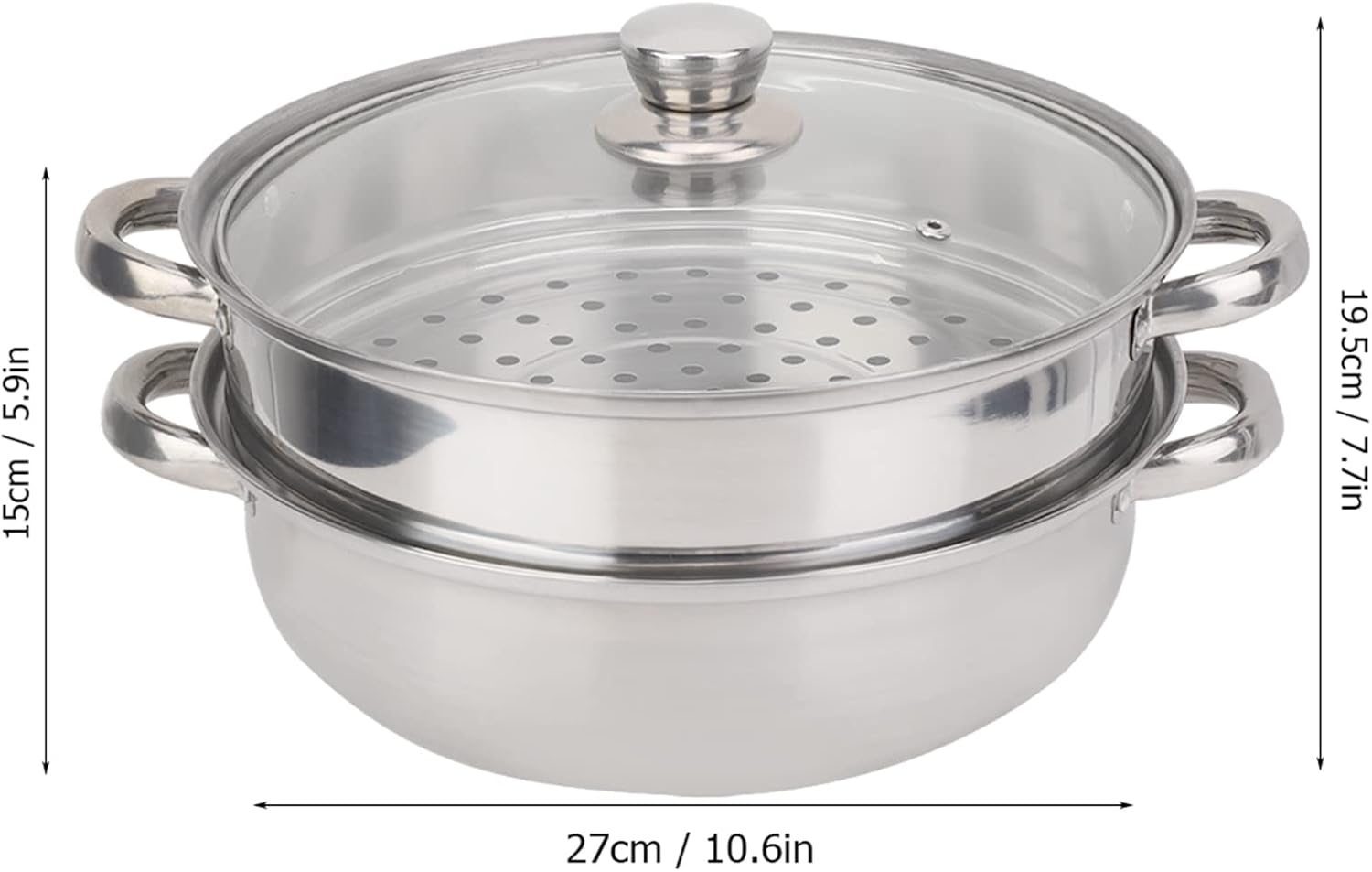 2 Layer Steamer,Stainless Steel Cookware 27cm 11in 2 Layer Steamer Pot Cooker Double Boiler Soup Steaming Pot for Steaming Buns Taro Seafood Etc