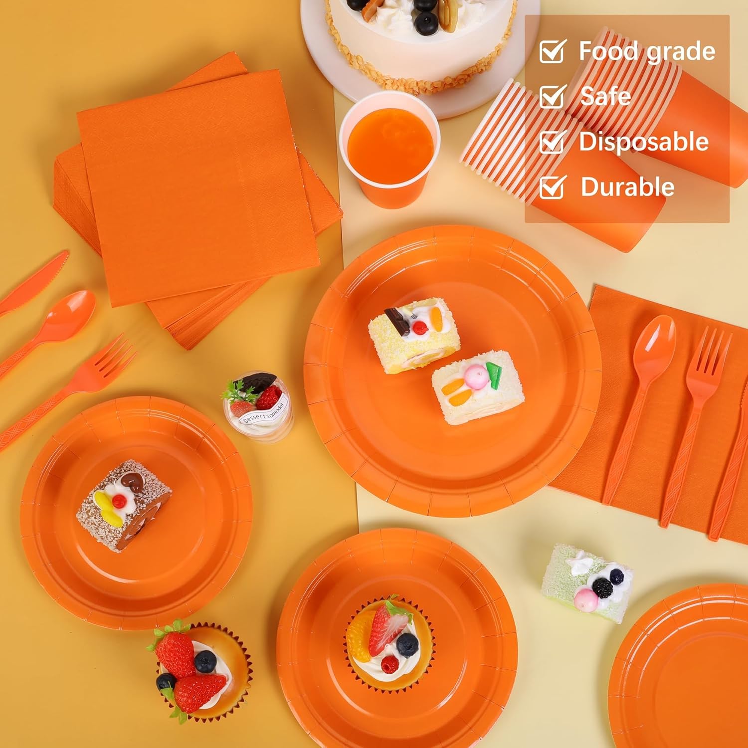 • Ideal for various occasions: the orange party supplies is almost suitable for any occasion, such as autumn-themed parties, Thanksgiving, weddings, birthday parties, baby showers, picnics, barbecues, etc.