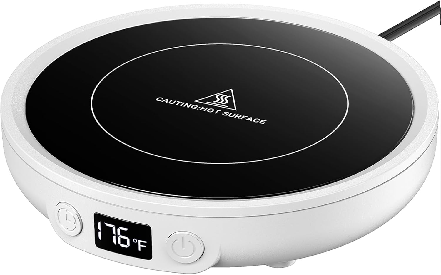 • Larger Heating Area: The coffee heater has a 5.2" super large heating panel, weighing 0.81LB (370g). The coffee warmer can warm beverages like coffee, milk, chocolate, tea candle and wax