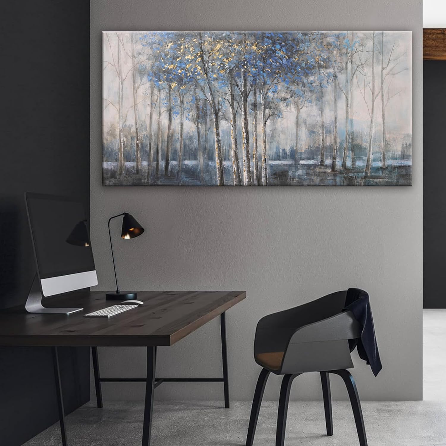 Canvas Wall Art Decor Pictures Wall Decor Prints Modern Large Wall Art Gold Wall Art Blue Grey Misty Botanical Textured Artwork for Walls For Room Living Room Bedroom Office Wall Decor 24"X48"