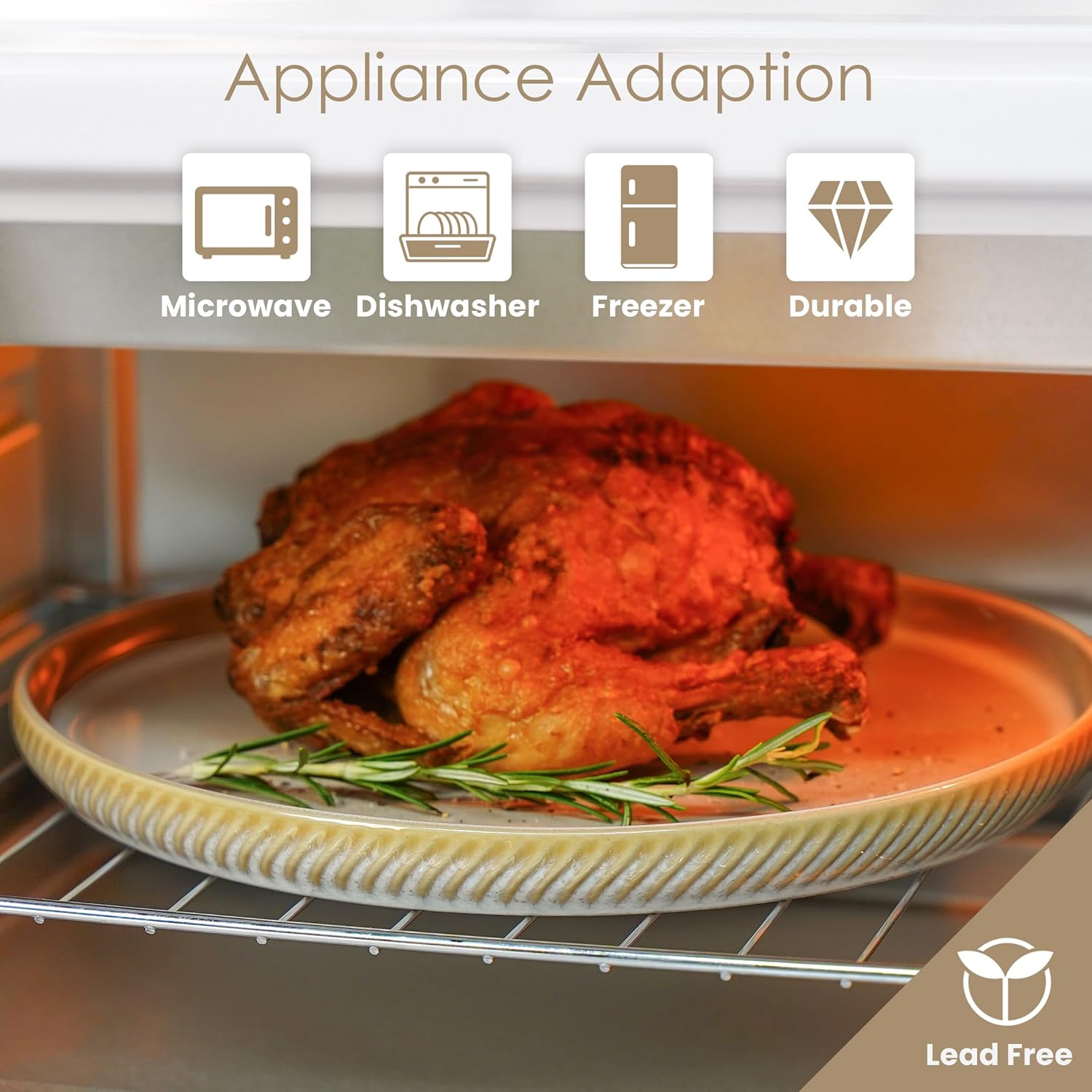 • ABOUT EARTHSONG SERIES DINNERWARE SET: The Sculpted Dune set captures the natural beauty of desert landscapes with its warm, beige glossy finish. The flowing, dune-inspired design brings a natural elegance to your table, with each piece having its own distinct, handcrafted charm. Every meal becomes a tranquil escape into nature