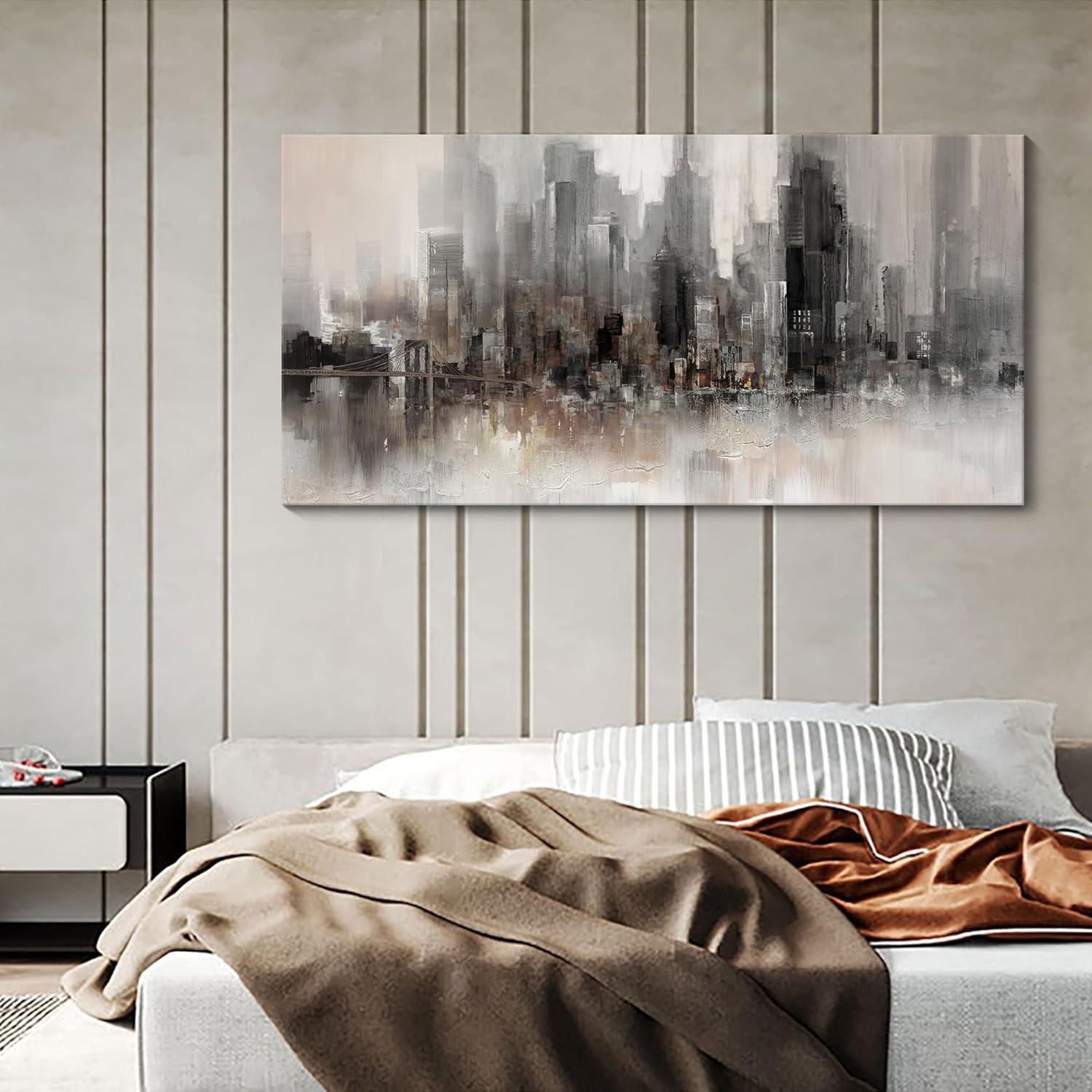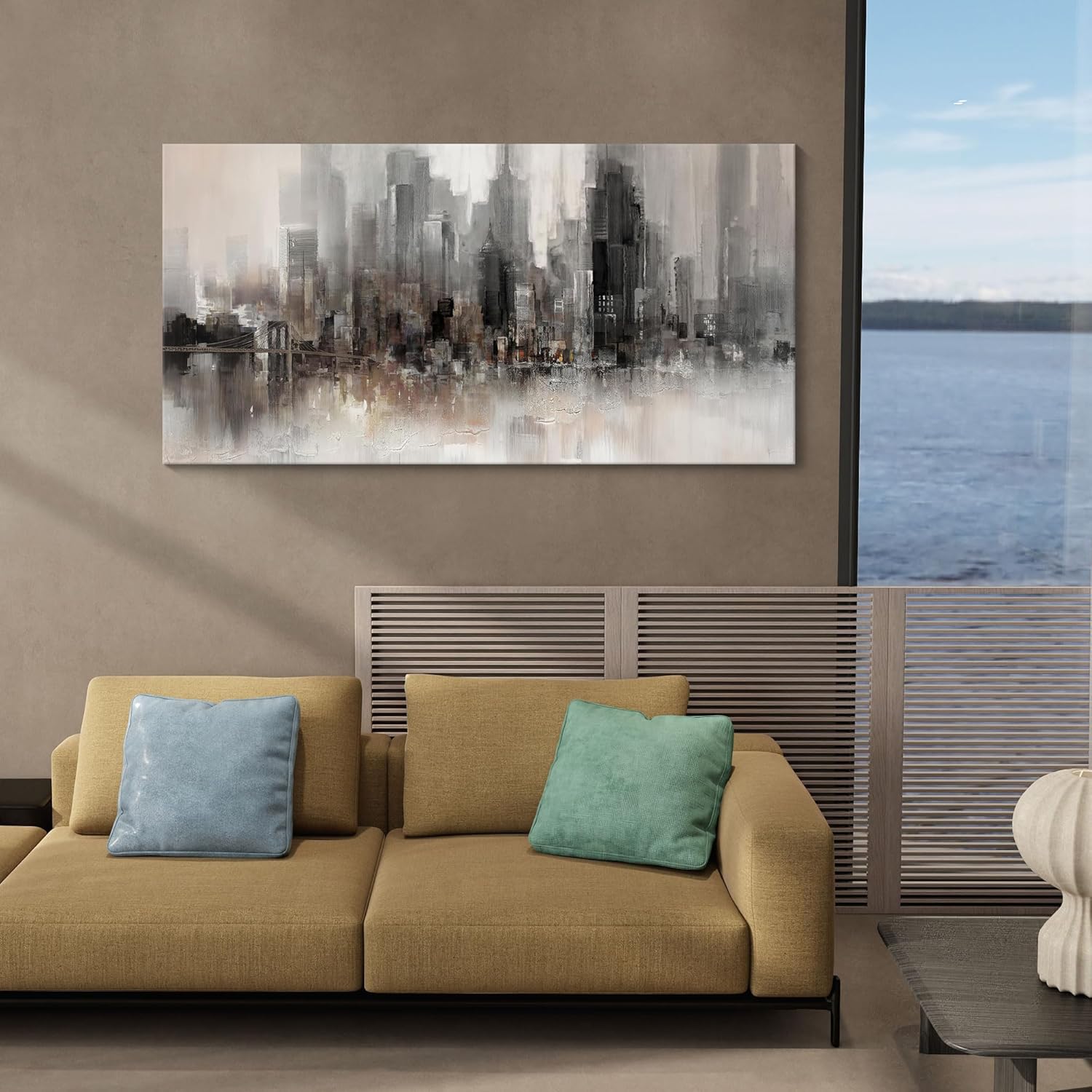 • nyc skyline wall art:Measuring 24x48 inches, artwork is ideally sized to serve as a captivating focal point without overwhelming the space, fitting seamlessly into various room layouts.