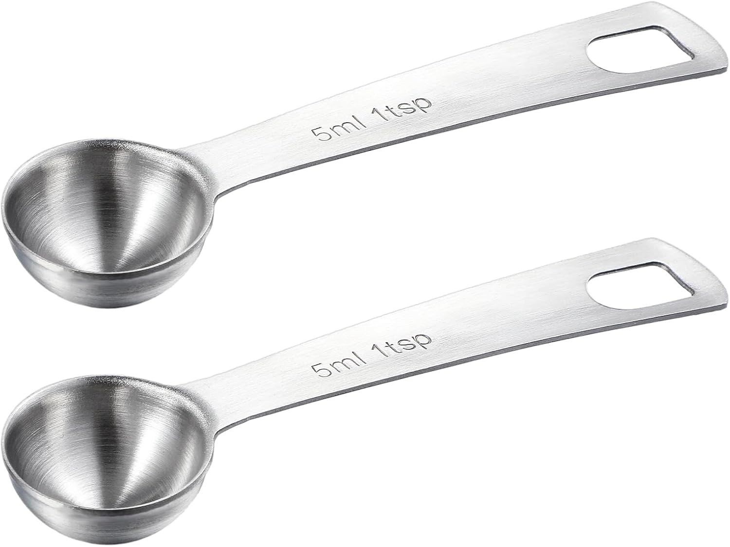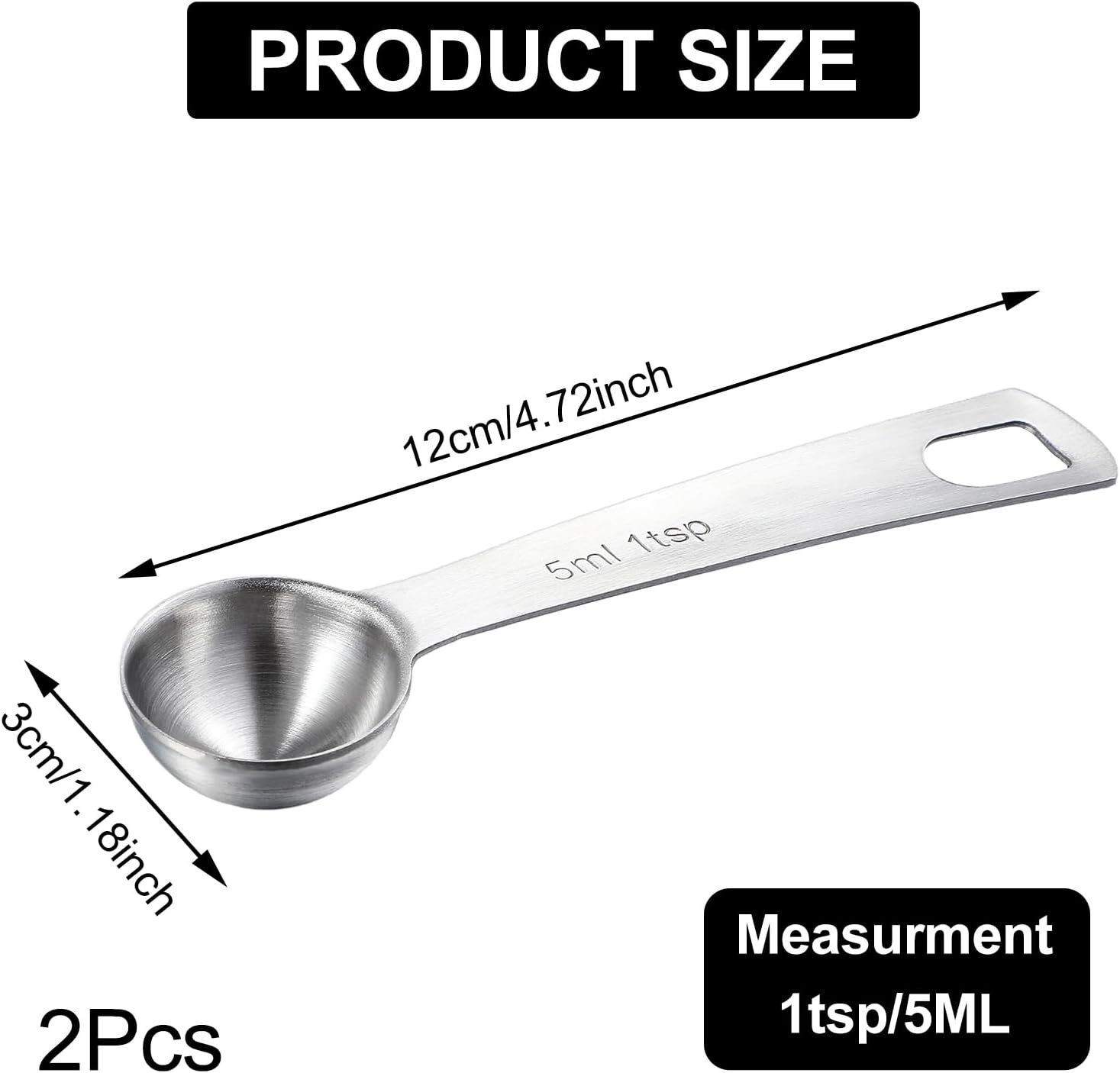 Lusofie 2 Pcs 1 Teaspoon Measuring Spoons 5ml Mini Spoons Stainless Steel Measuring Spoons For Kitchen Cooking Spoon Coffee Spoon (Silver)