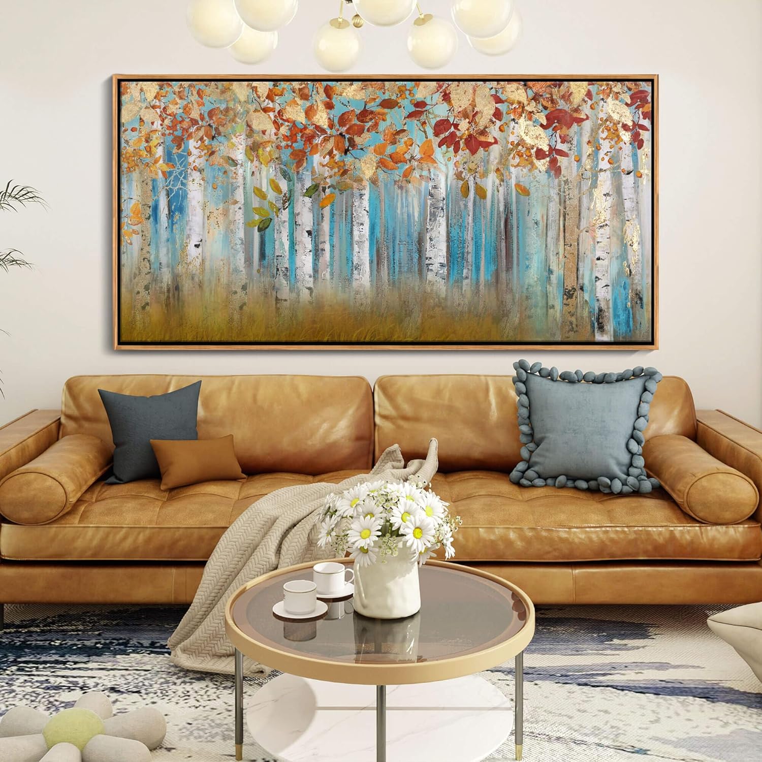 YCPRIMER Birch Tree Canvas Wall Art Landscape Yellow Picture Wall Decor for Living Room Large Bedroom Wall Decor Above Bed Artwork for Walls 29×58IN