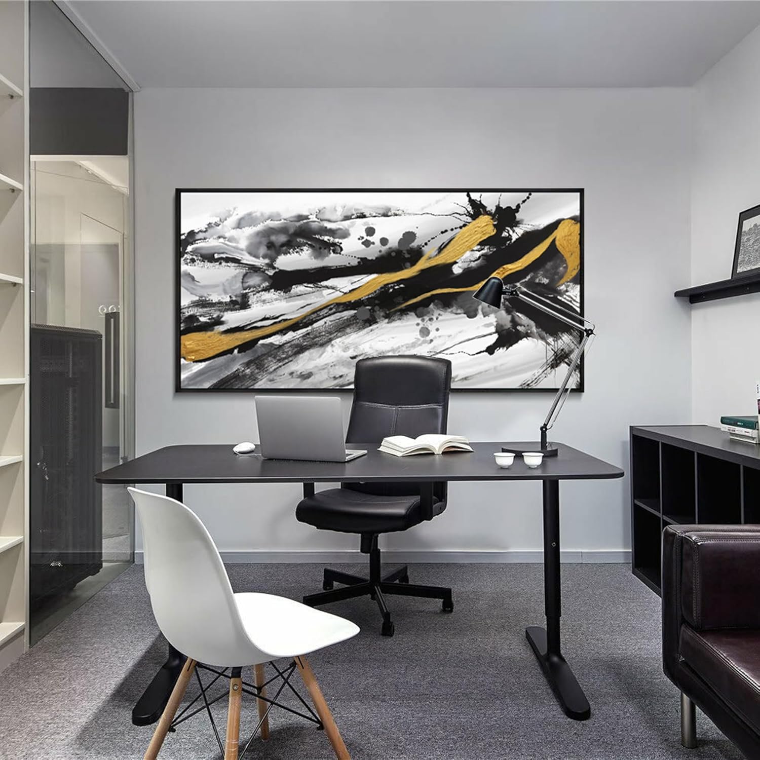 XLSJERST Black and White Abstract Wall Art - Large Frame Canvas Wall Art for Living Room Bedroom Modern Gold Ink Painting Style Picture Artwork for Wall Decor Size 29x58 Inches