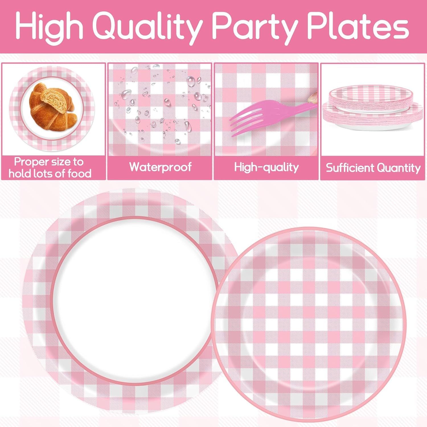 • Convenient to use: These pink gingham paper plates can rescue your hands from dishwashing duty. You can simply throw these out when making cleaning up after the party and won't cause an environmental pollution, so you can enjoy more time with friends and family at birthday party.