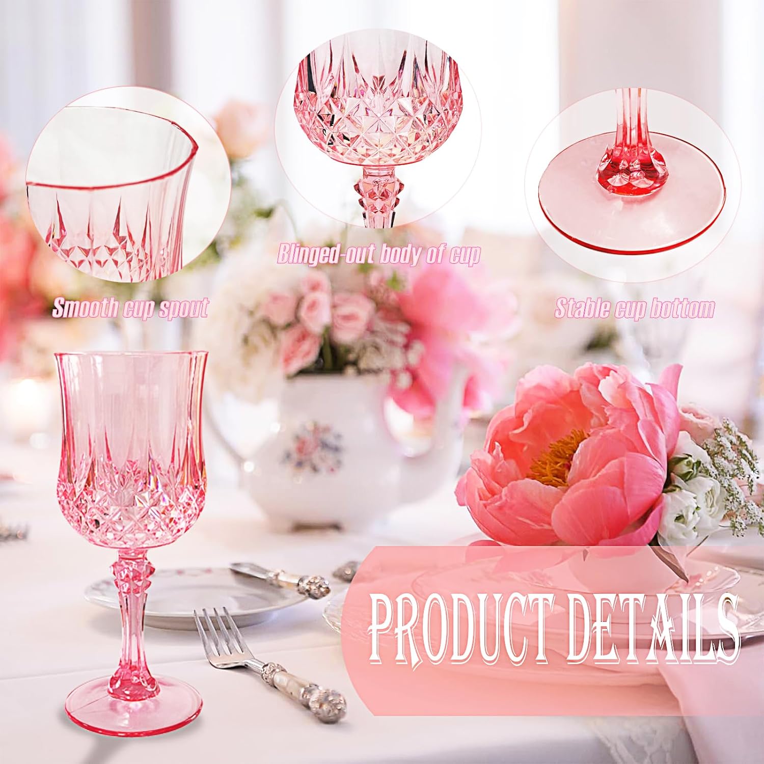 12 PCS Pink Plastic Wine Glasses,Reusable Plastic Wine Glasses,Pink Goblet Glass,Durable and Sturdy Cups Can Be Used for Various Parties Such as Weddings!