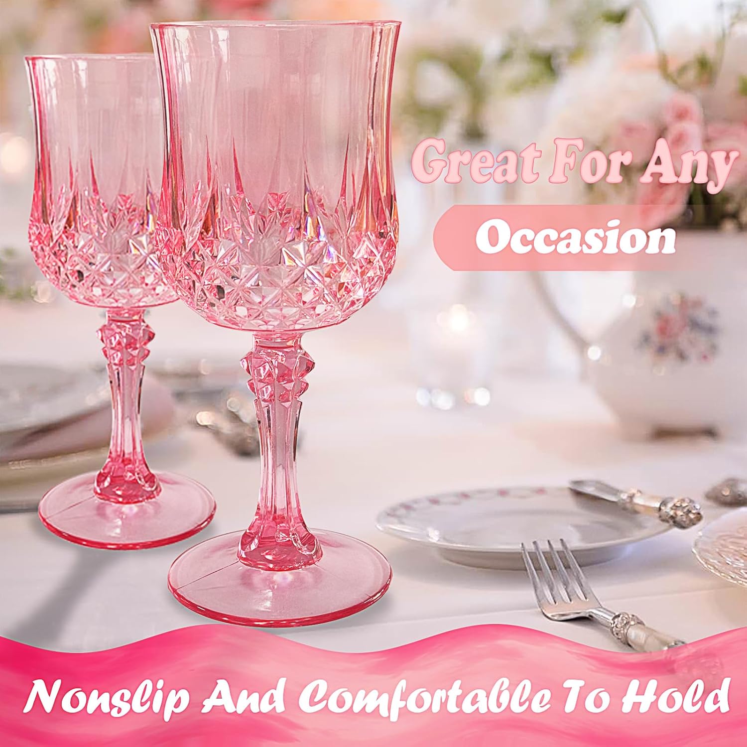 48 PCS Pink Plastic Wine Glasses,Reusable Plastic Wine Glasses,Pink Goblet Glass,Durable and Sturdy Cups Can Be Used for Various Parties Such as Weddings!