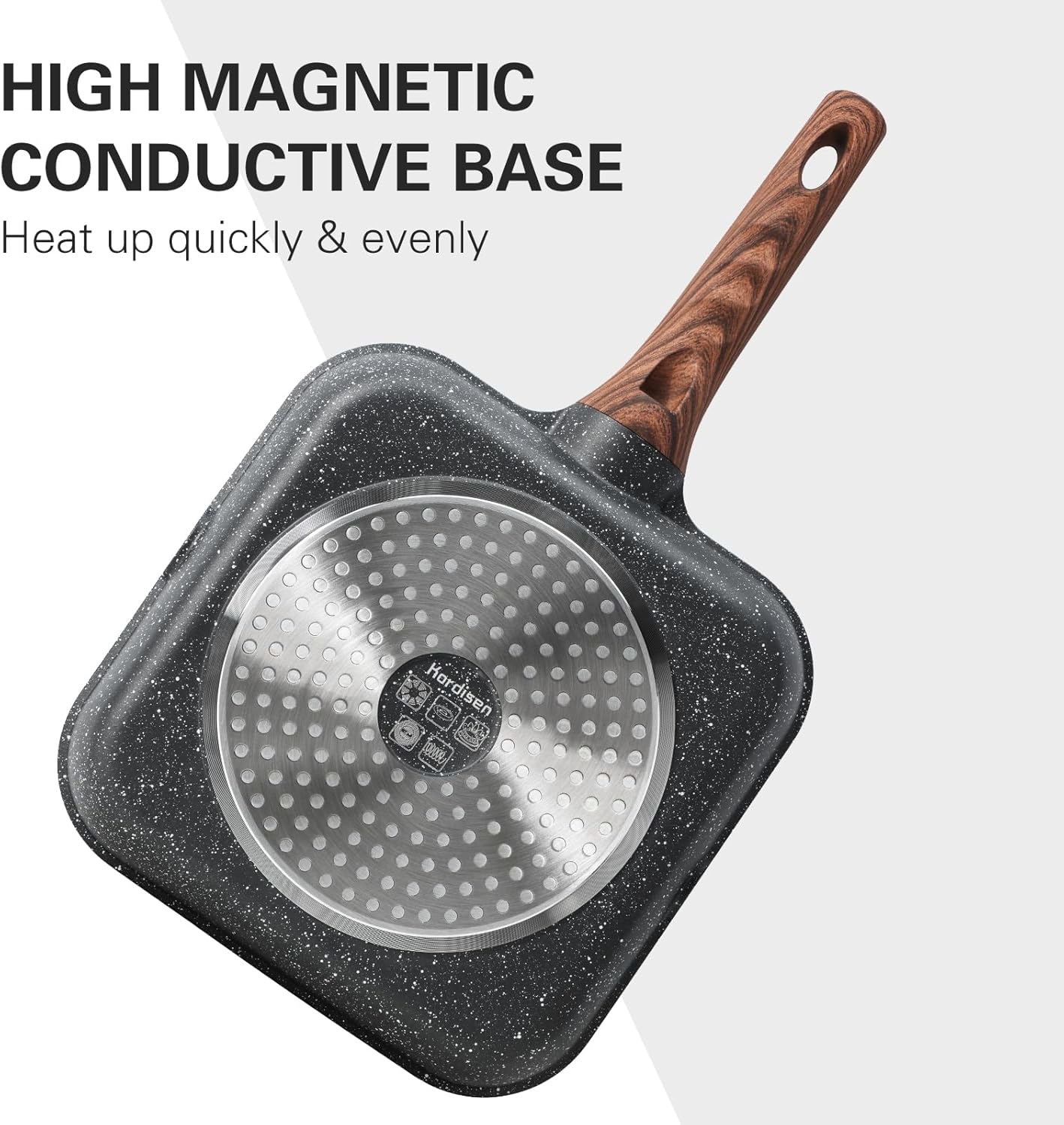 • 【Even Heating】: High magnetic conductive stainless steel base ensures even and rapid heat distribution; helps achieve consistent cooking results across the pan
