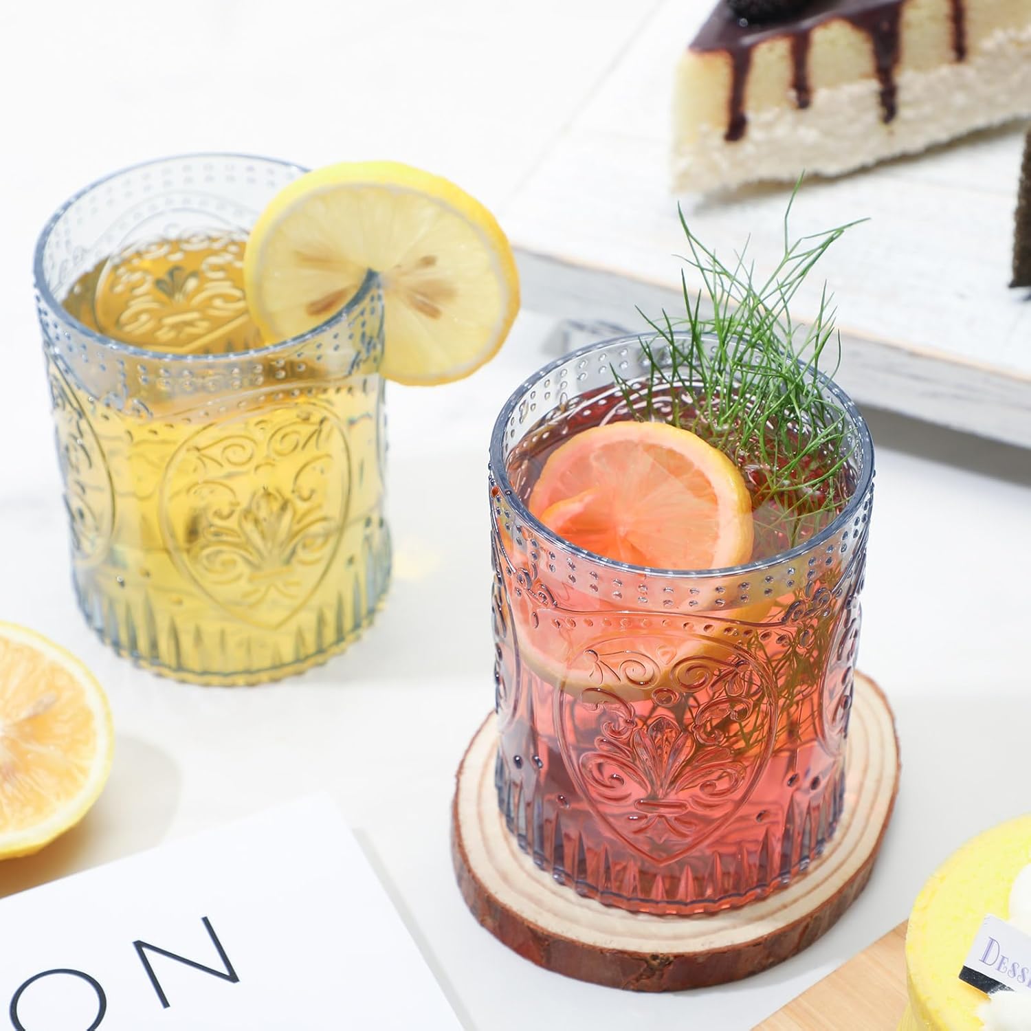 • Size Specification: With a 2.8 inch /7 cm mouth diameter and 3.5 inch / 9 cm height, these 8.5 oz / 250 ml vintage drinking glasses strike the ideal balance between form and function. The embossed texture and clear finish bring timeless grace to your everyday beverage ritual