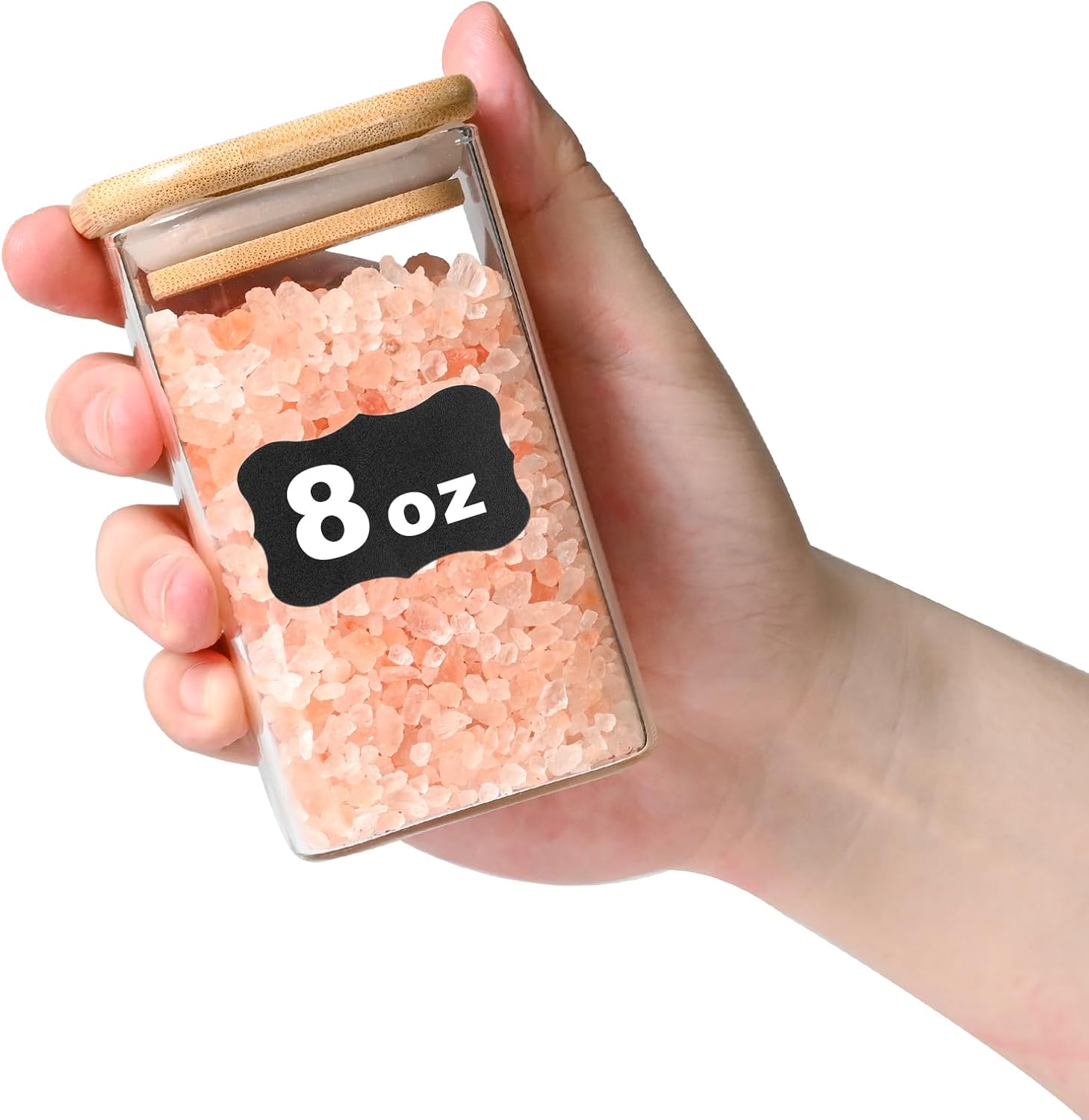 • [Product details] Square glass storage jar height:4.17in. Diameter:2.36in. Capacity:8oz(227ml). Package contains: 12pcs. 12 pieces glass pantry storage containers with same volume meet you various storage need.