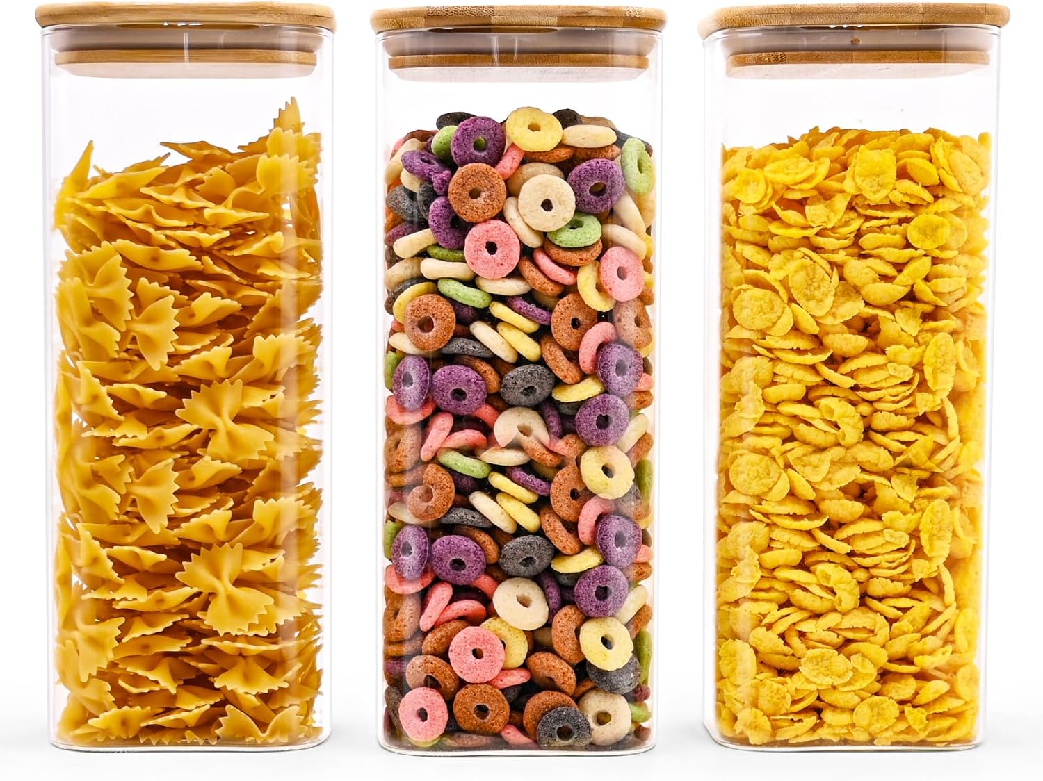 • [Premium quality and safety assurance] Our glass containers with bamboo lids are made of premium quality and borosilicate glass, glass pantry storage containers can withstand the harsh tests of daily use. The bamboo lid provides an airtight seal, ensuring the freshness of stored food. Our glass food storage jars are BPA Free, Phthalate Free, PVC Free, Lead Free, They are healthy and reliable choice for your kitchen.