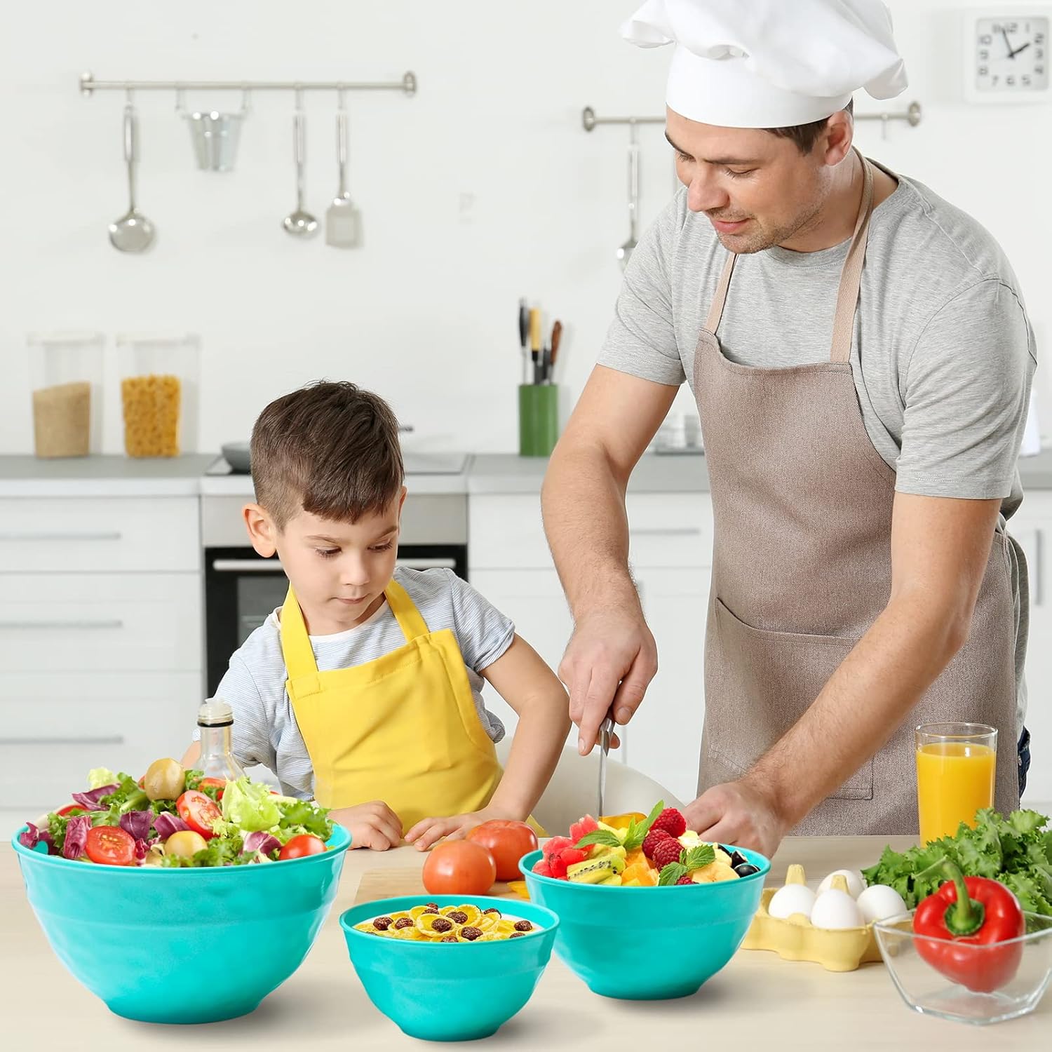 • Compact & Functional: Nesting design saves space in your kitchen, RV, or pantry. Non-slip bases ensure stability while mixing, and leak-resistant lids lock in freshness—perfect for meal prep, travel, picnics, and outdoor entertaining.