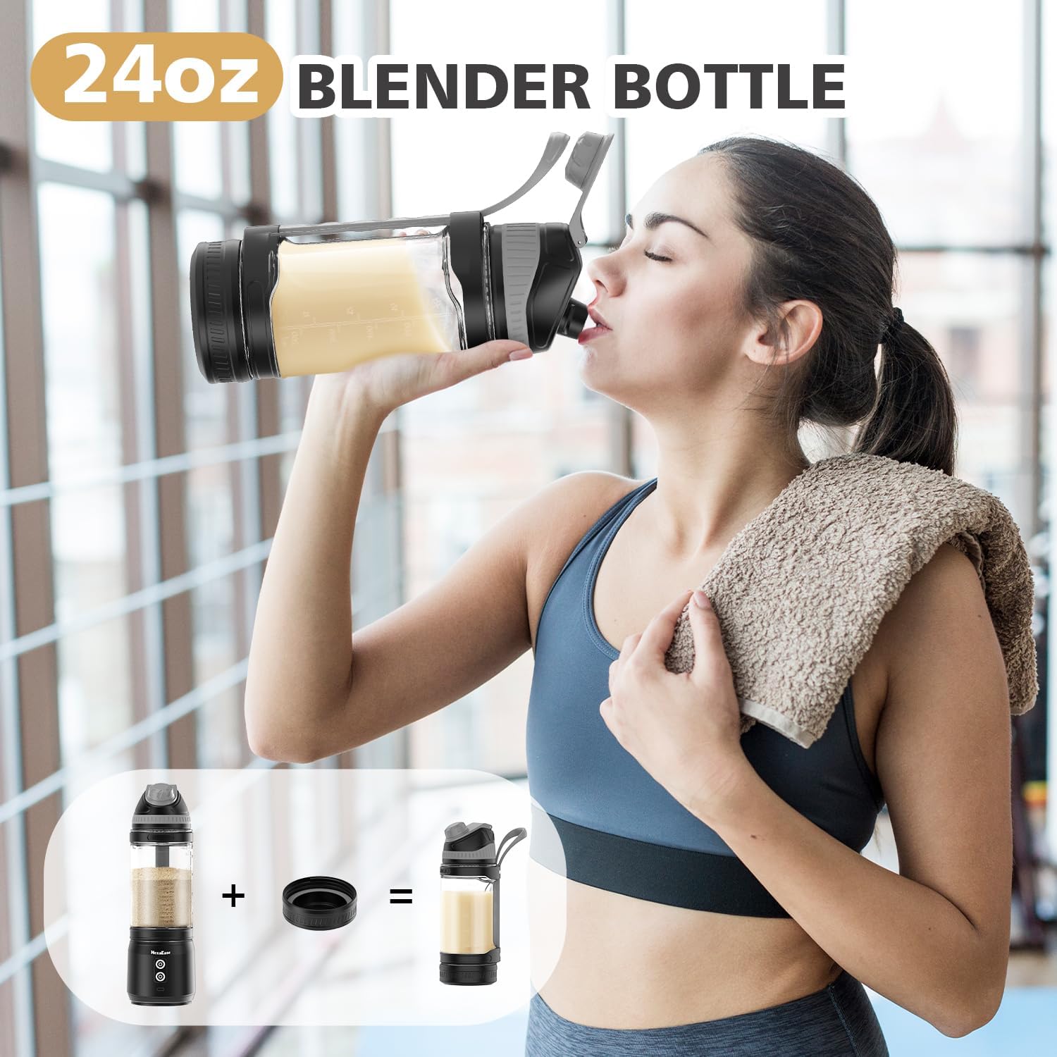 Portable Personal Blender for Smoothies, Protein Shakes, Frozen Drinks - 24Oz Blender Cup Bottle with Sip Spout, Travel Lid, USB-C Rechargeable, Cordless - Mini Small Blenders for Kitchen, Gym, Office