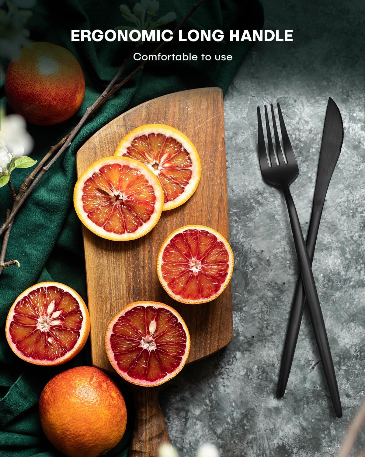 • Heavy Duty Stainless Steel: The cutlery set is made of food-grade thickened stainless steel, so don't have to worry about its quality and can use it with confidence. The extended round handle conforms to the principles of ergonomics, ensuring that every touch is a redefinition of comfort, and long-term use is burden-free. What's more worth mentioning is that the heavy-duty material brings a stable grip experience, which makes people love it