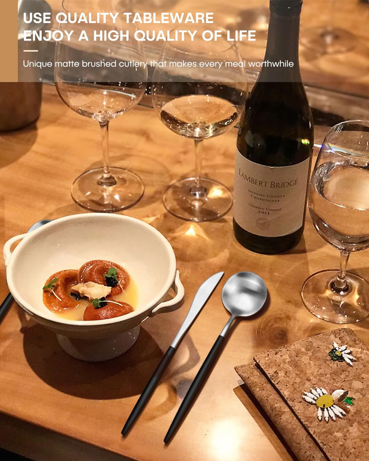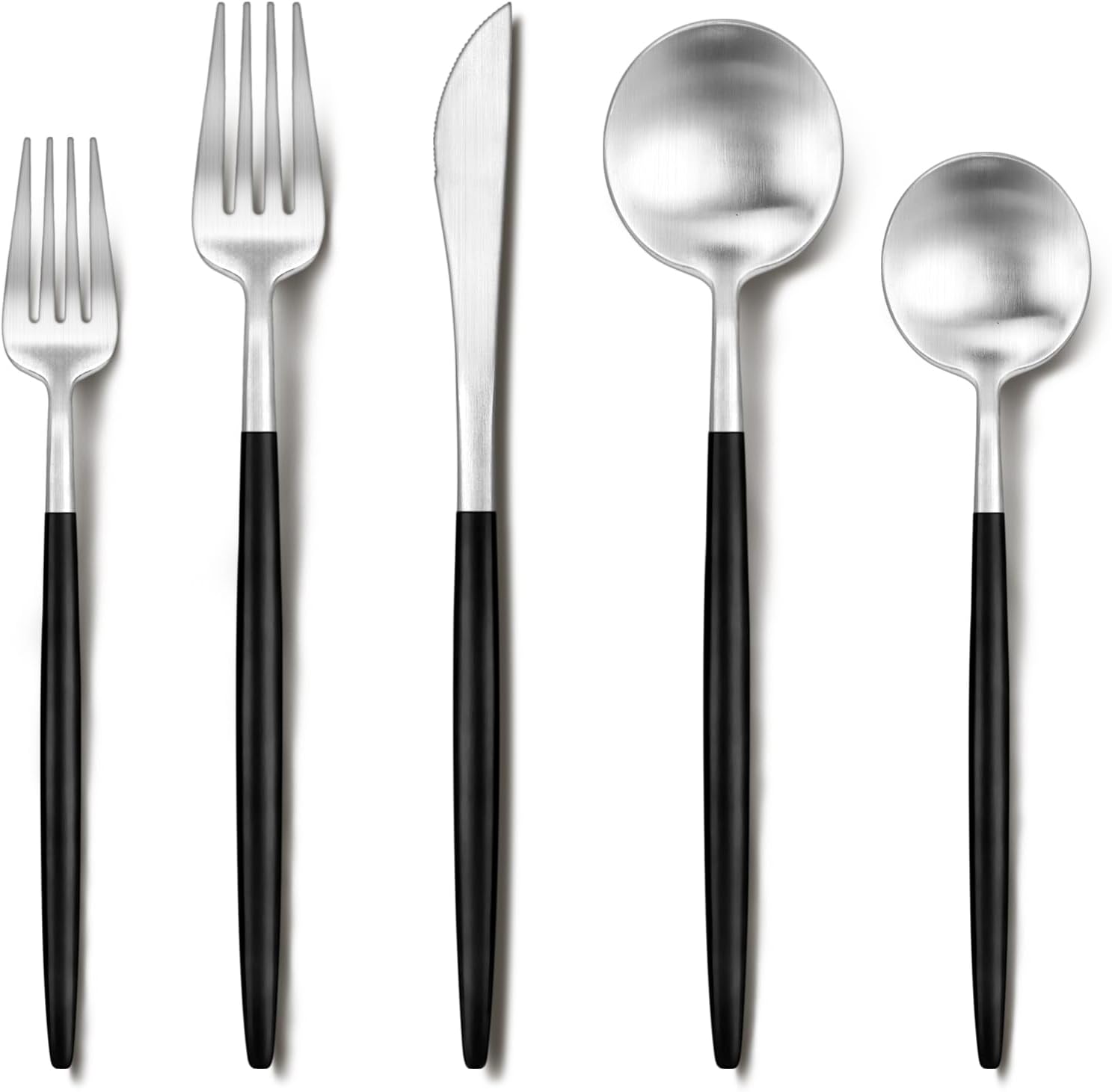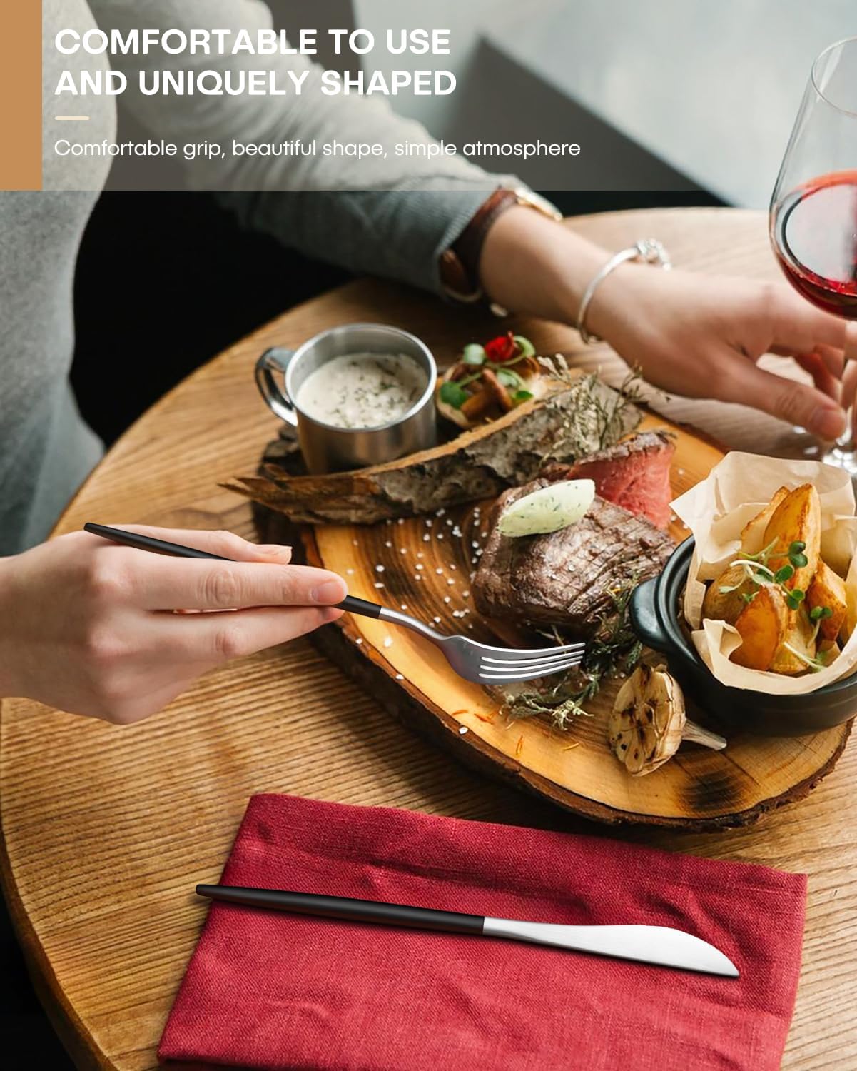 • Exquisite Workmanship: Crafted from food-grade stainless steel, Ollex Silver Black Silverware Set offers superior durability&safety. Smooth surface and edges, fade-resistant, rust-free. Enjoy a seamless dining experience with hassle-free matte silverware sets