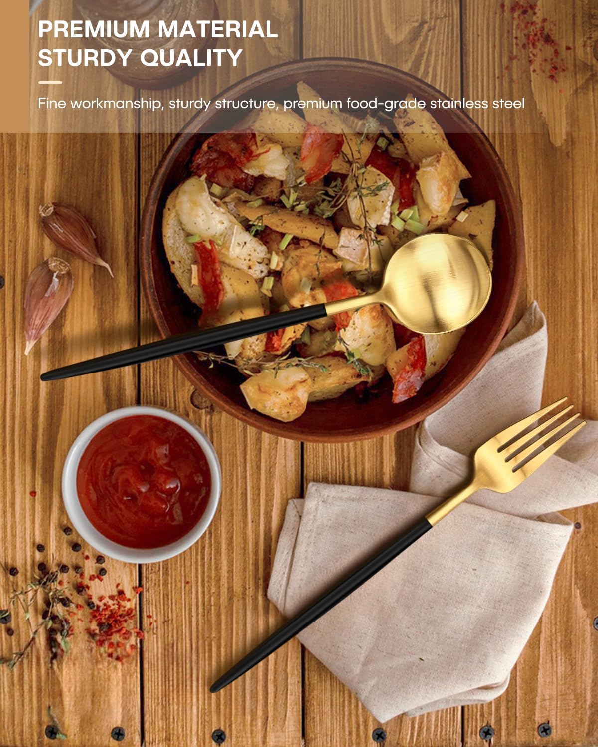 • SUPPORT: If you have any questions about these gold and black silverware sets, please get in touch with us anytime, we will provide timely assistance in resolve