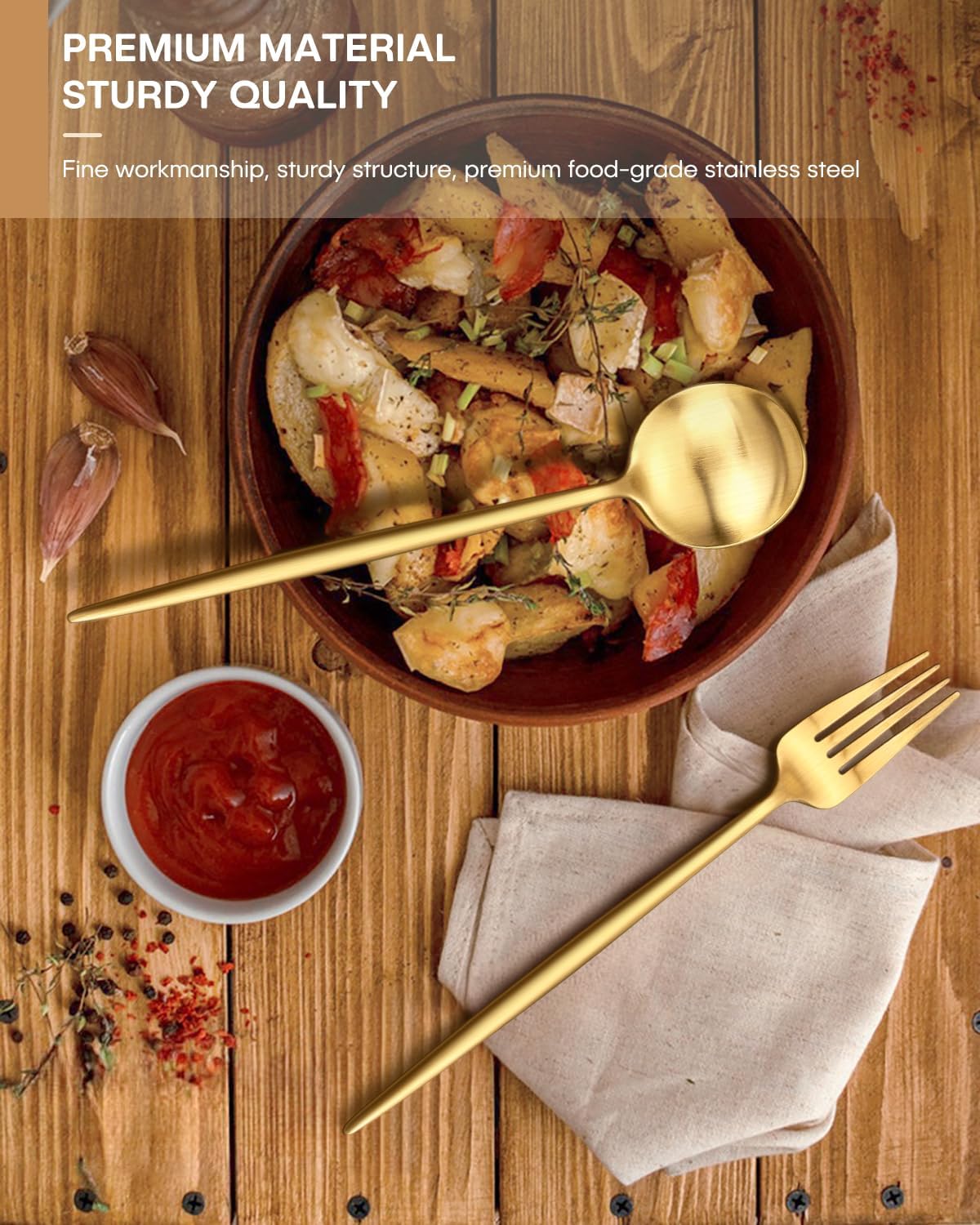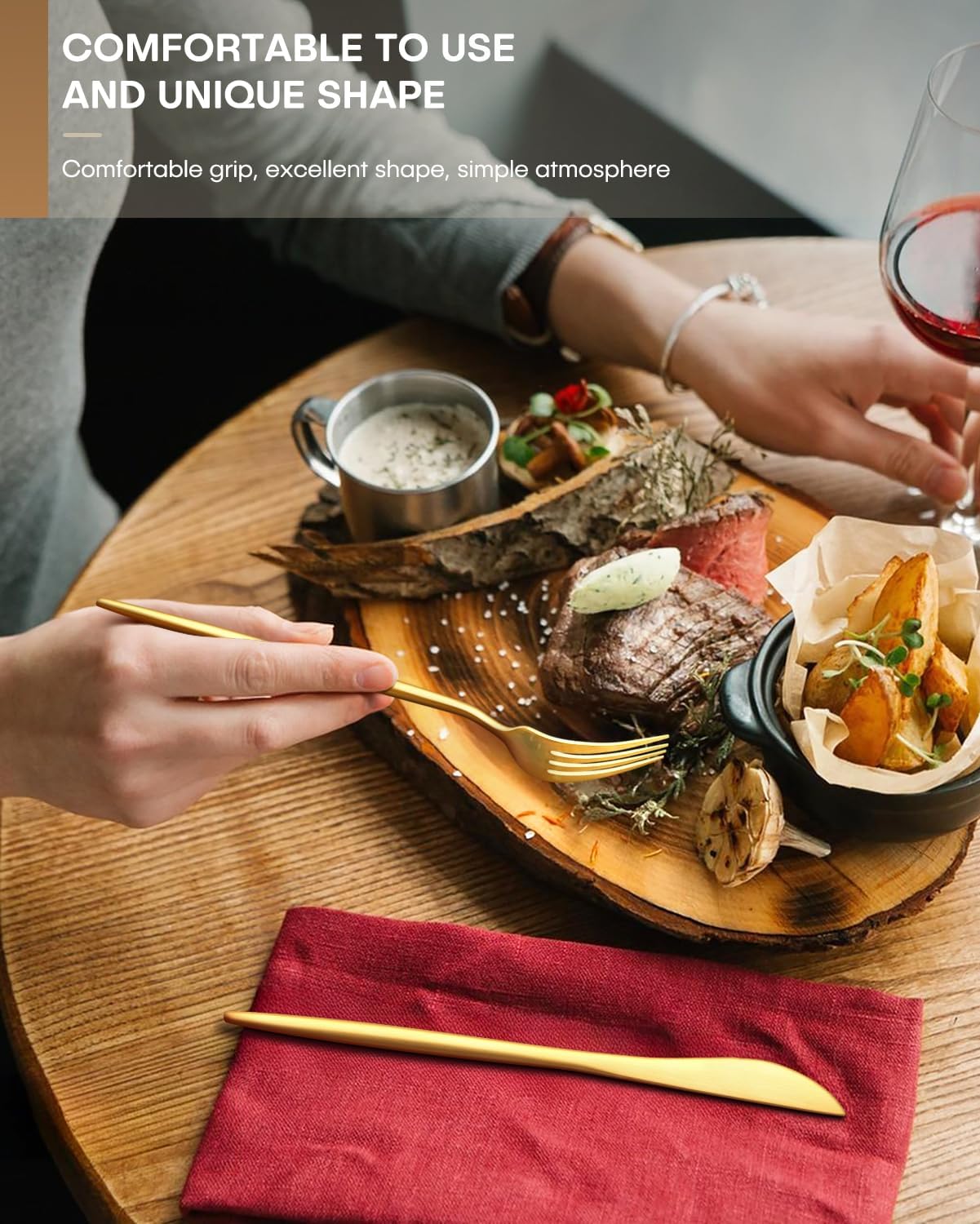 • Classic Silhouette Utensil Set: Gold Utensil Sets have classic apparent with clean lines, pleasure-to-hold handles, appropriate weight, and perfect balance added to ensure max comfort during use, which the best choice for daily use or entertain guests