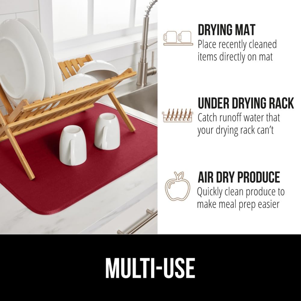 GORILLA GRIP Ultra Water Absorbent Microfiber Dish Drying Mat, Quick Dry Thick Mesh, Slip Resistant Pad for Sink Dishes or Under Rack, Kitchen Counter Accessories, 16x18, Machine Wash Mats, Red