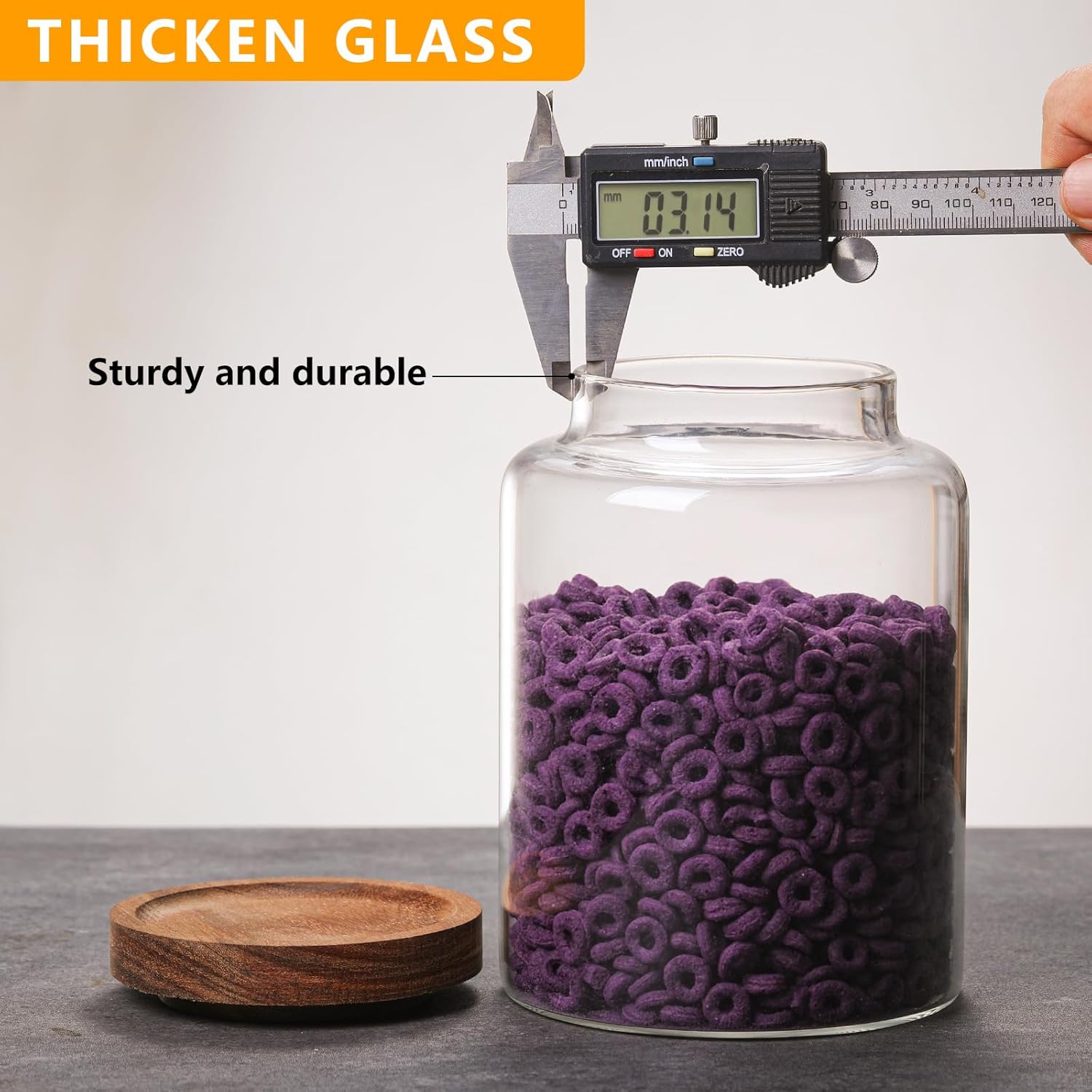 • ★SIZE&AlMIGHTY USE:Large Capacity:Large glass containers with lids spoon perfect for storing and preserving a variety of ingredients including pasta, ground coffee,cookies,dried beans, pepper, jams, chutneys, rice, sugar, flour, tea, coffee beans, spices, biscuits, candy,cheese,flour, sugar, seeds,nut,cashew,Grains, Flour,etc. Keep your space tidy and safe,saving space and convenient .