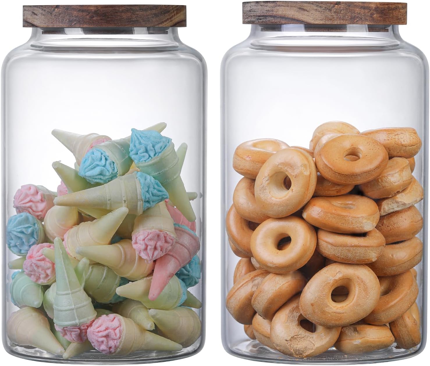 • ★SIZE&AlMIGHTY USE:Large Capacity:Large glass containers with lids spoon perfect for storing and preserving a variety of ingredients including pasta, ground coffee,cookies,dried beans, pepper, jams, chutneys, rice, sugar, flour, tea, coffee beans, spices, biscuits, candy,cheese,flour, sugar, seeds,nut,cashew,Grains, Flour,etc. Keep your space tidy and safe,saving space and convenient .