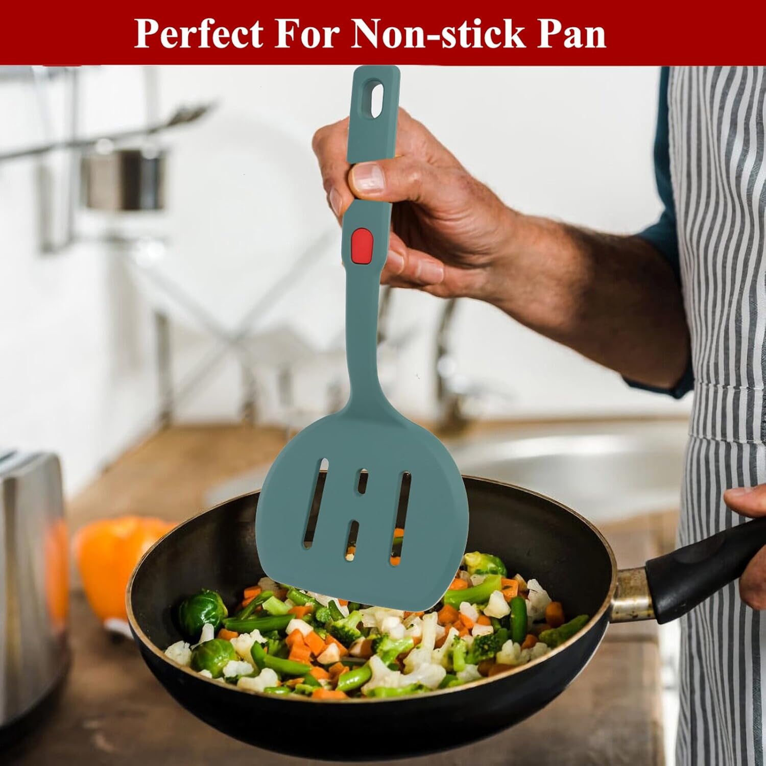 • 🍒The spatula have thin and hard edges make cooking easier and glides easily beneath most foods.The large spatula is sleek, comfortable to hold, and perfectly medium sized for a multitude of uses in your kitchen.