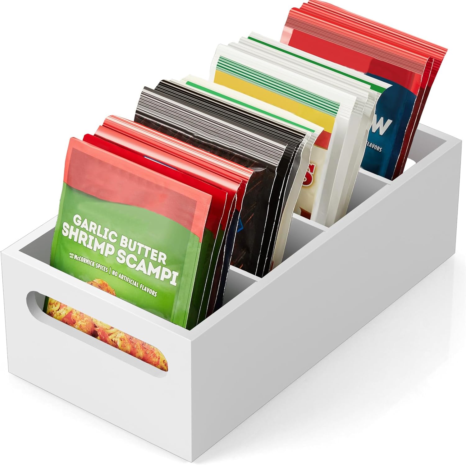 • Seasoning Packet Organizer with Handle: Seasoning packet organizer with 2 built-in handles makes it easy to pull storage bins in and out. The compact design of this kitchen cabinet organizer easily fits into small or crowded kitchen cabinets and pantry shelves, and fits seamlessly into any pantry or kitchen setup