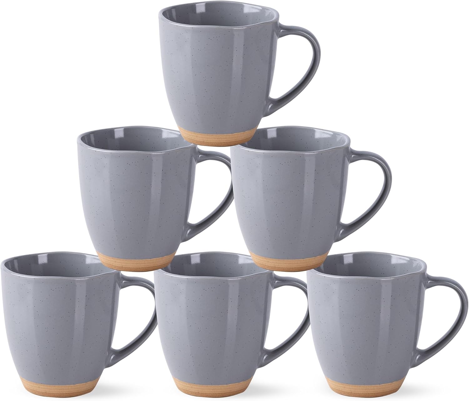 AmorArc 12oz Ceramic Coffee Mugs set of 6, Stylish Coffee Mugs with Rustic Terracotta Underside for Latte/Cappuccino/Milk/Cocoa, Dishwasher&Microwave Safe