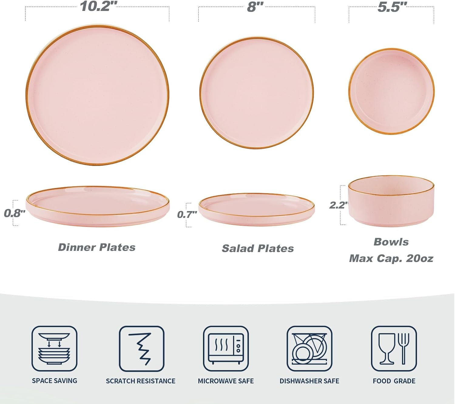 • SCRATCH RESISTANT: Our dishes are fired at 2340°F for 13.5 hours to form a strong scratch resistant surface. No need to worry about scratches from your forks or knives.