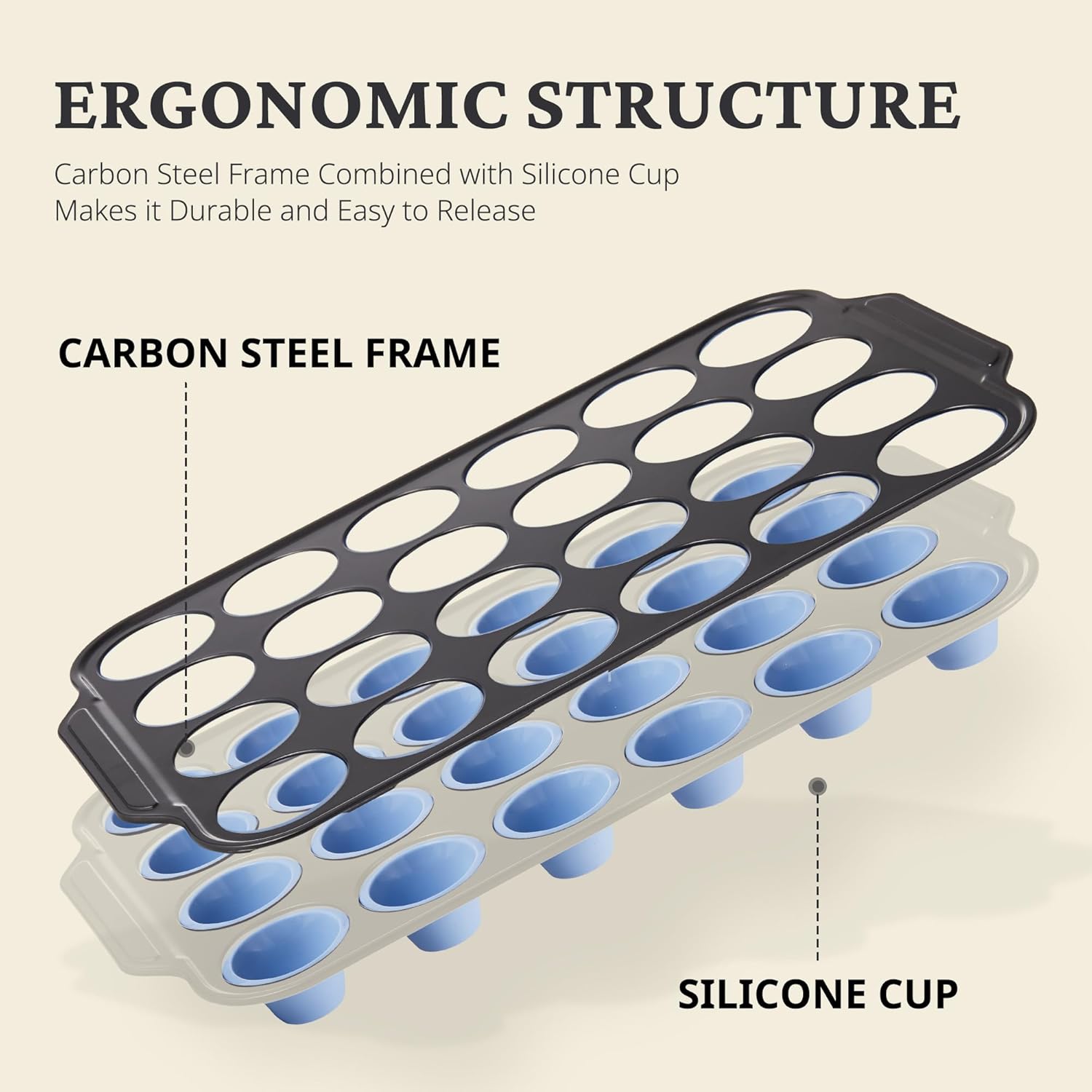 • HASSLE-FREE CLEANING - The combination of a carbon steel frame and silicone cups ensures that your mini muffin tin is easy to clean. No sticky mess—just a quick wash with soap and water, and it's ready for your next batch of treats.