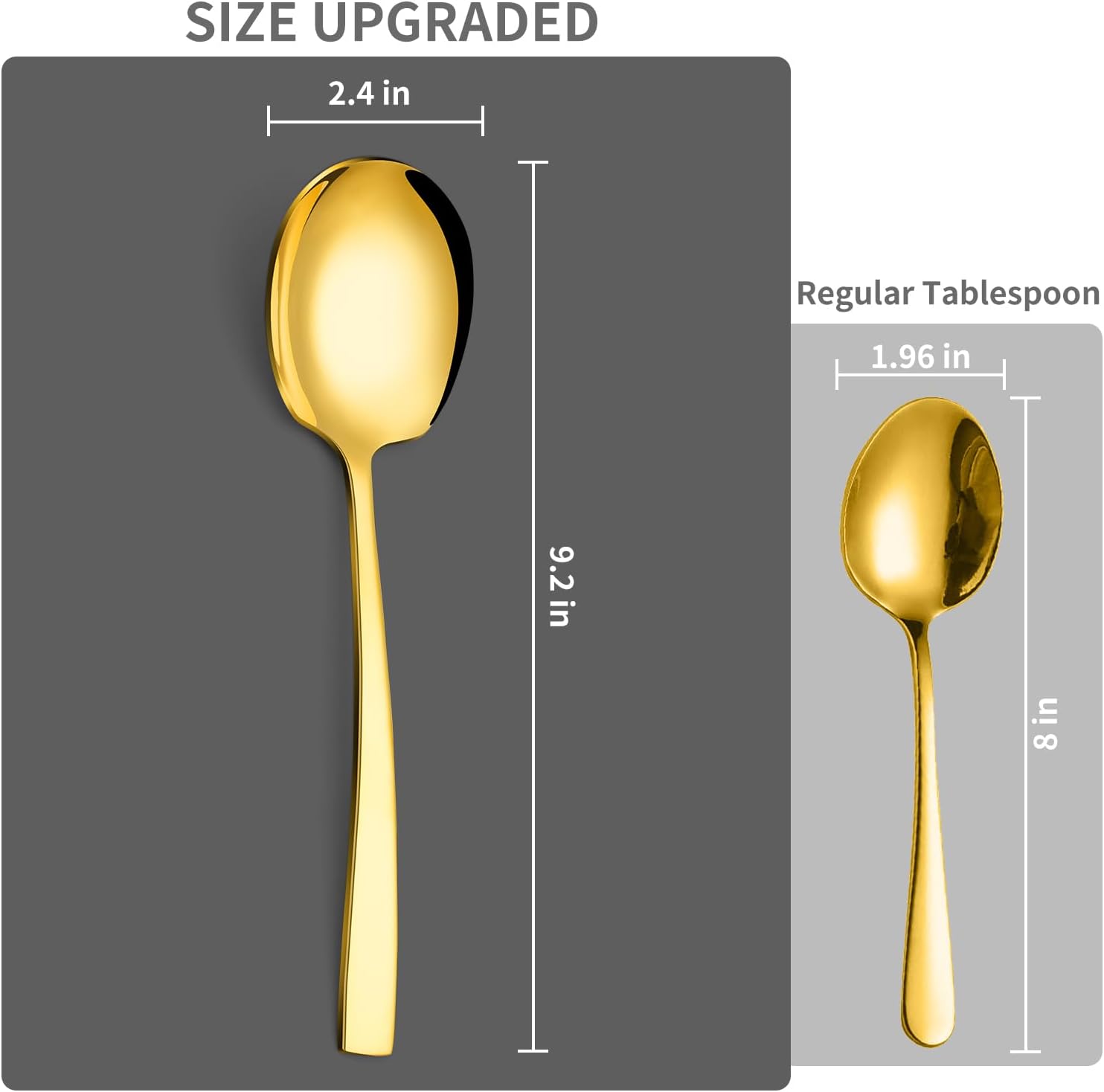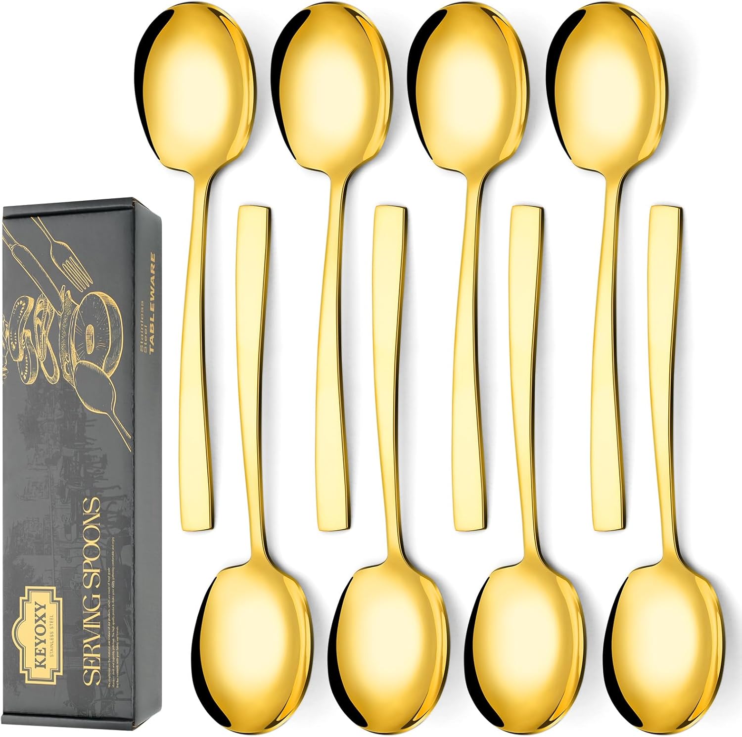 8 Piece Stainless Steel Serving Spoons Set - 8 Large Spoons, 9.2-Inch, Dishwasher Safe, for Parties/Kitchen/Buffet/Catering,Gold