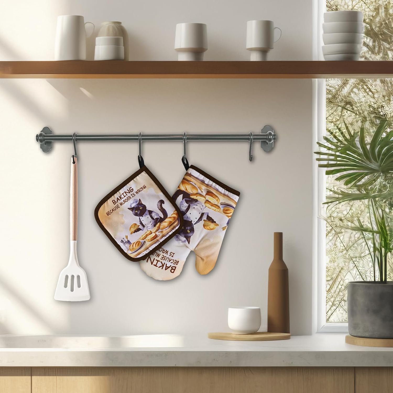 Funny Baking Cat Oven Mitts and Pot Holders(Set of 2) Baking Because Murder is Wrong Baker Mitts for Kitchen Decor Silicone Non-Slip Oven Mitts Cat Lover Gift Birthday Gift for Friend Chef