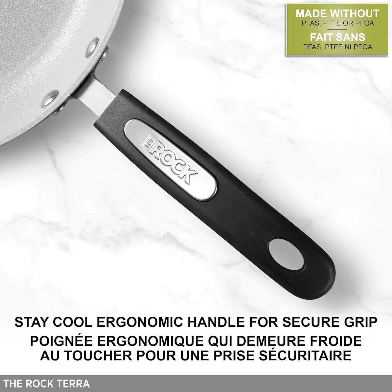 • The Rock Terra Collection 8" (20cm) Fry Pan has a ceramic non-stick surface free from PFAS, PTFE, and PFOA.