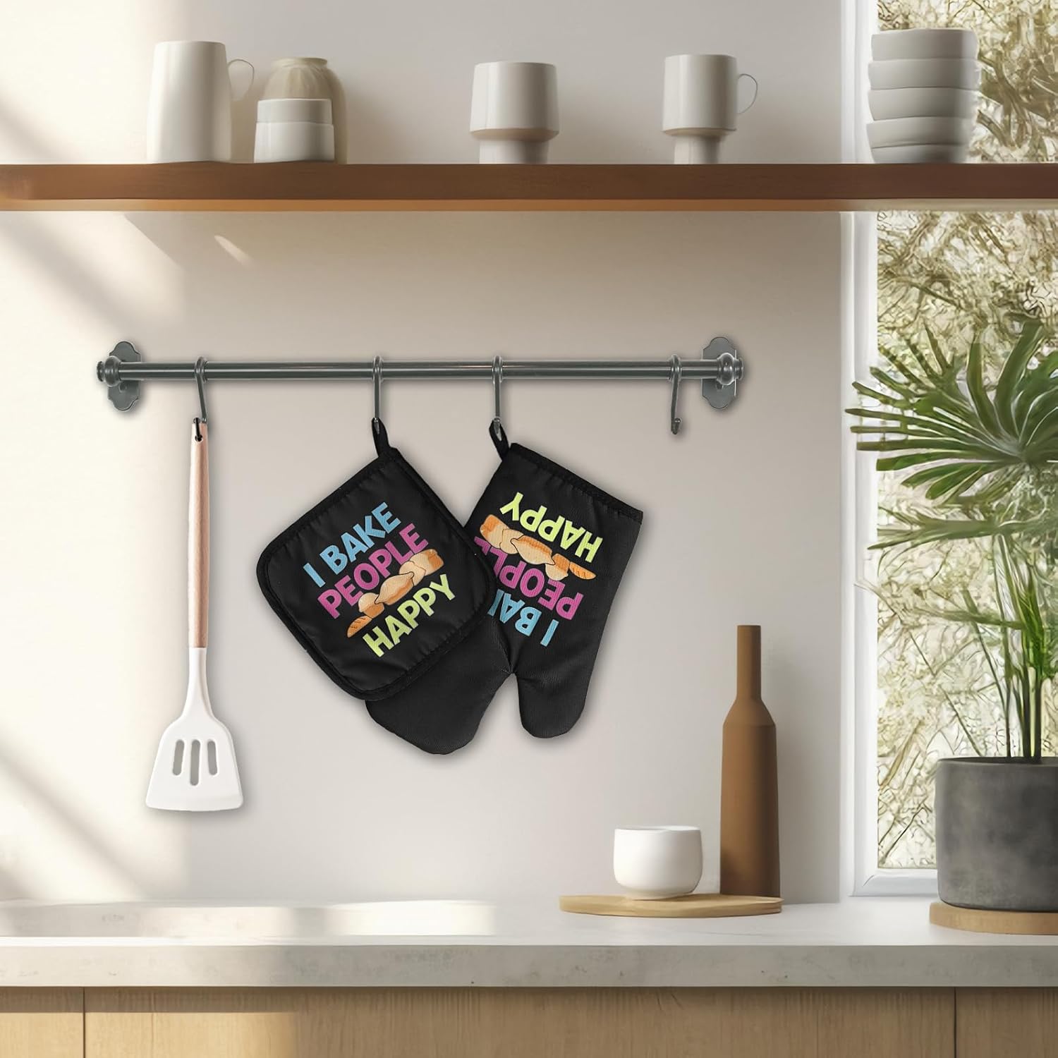 Funny Baking Oven Mitts and Pot Holders(Set of 2) I Bake People Happy Heat Resistant Mitts Silicone Non-Slip Oven Mitts Bake Lover Gift Novelty Birthday Gift for Women Men Friend Sister Chef