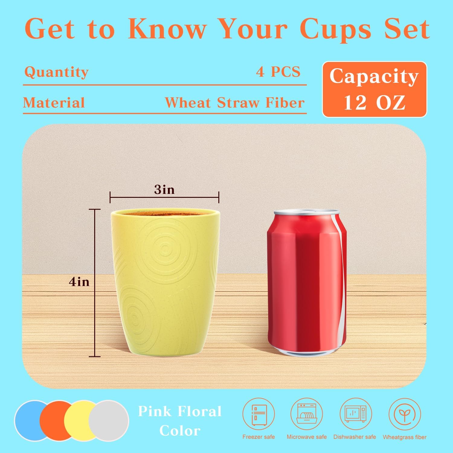 • UNIQUE ANTI-SLIP TEXTURE DESIGN: These wheat straw cups feature smooth edges and a unique textured design on the body that is both anti-slip and decorative for your tabletop. Additionally, the appropriate size makes them easier for children to hold.