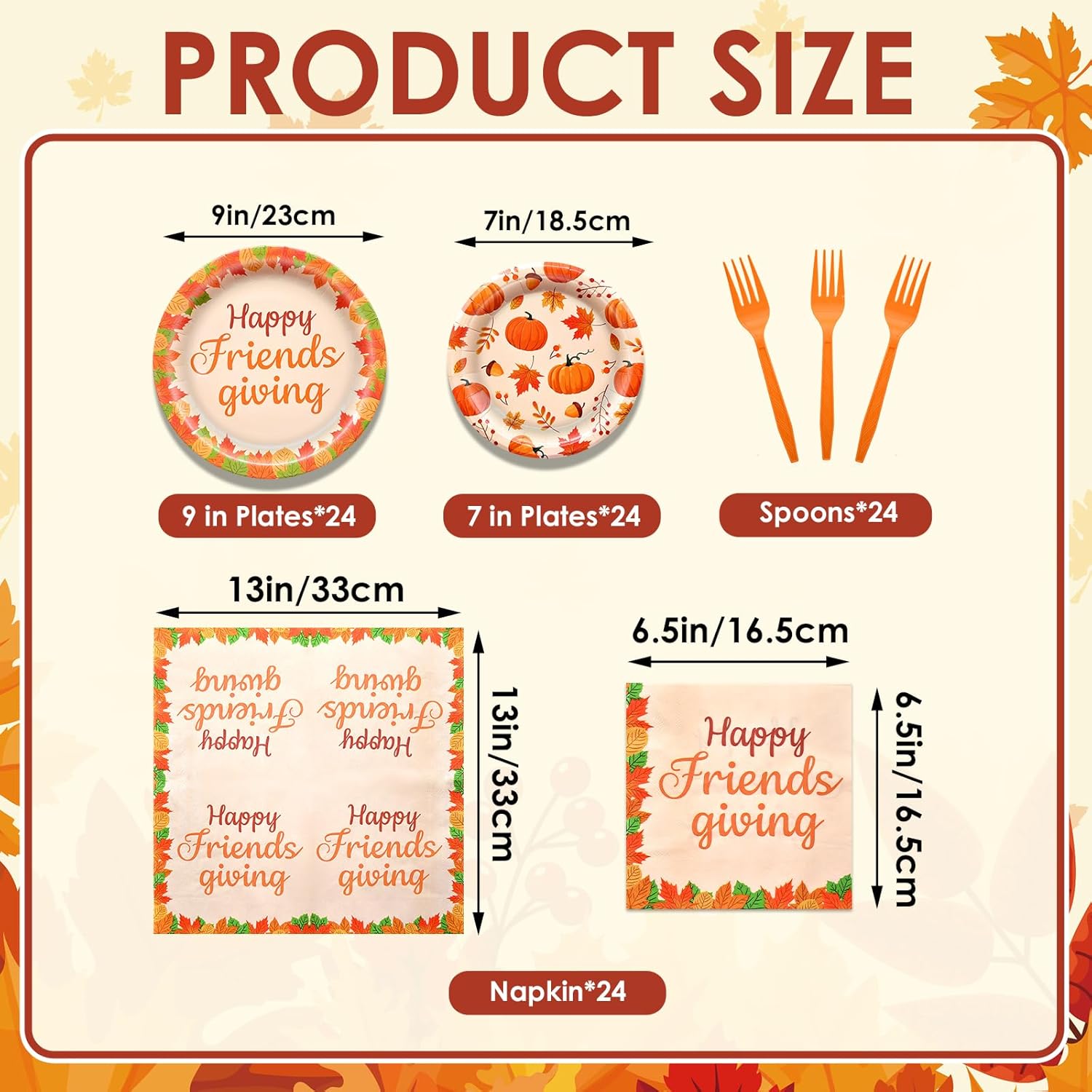 • High-Quality Dinnerware Set - This Friendsgiving tableware set includes everything you need for a festive autumn gathering. Made from premium quality paper, the set is sturdy enough to handle all your favorite dishes and desserts while being soft and comfortable for use.