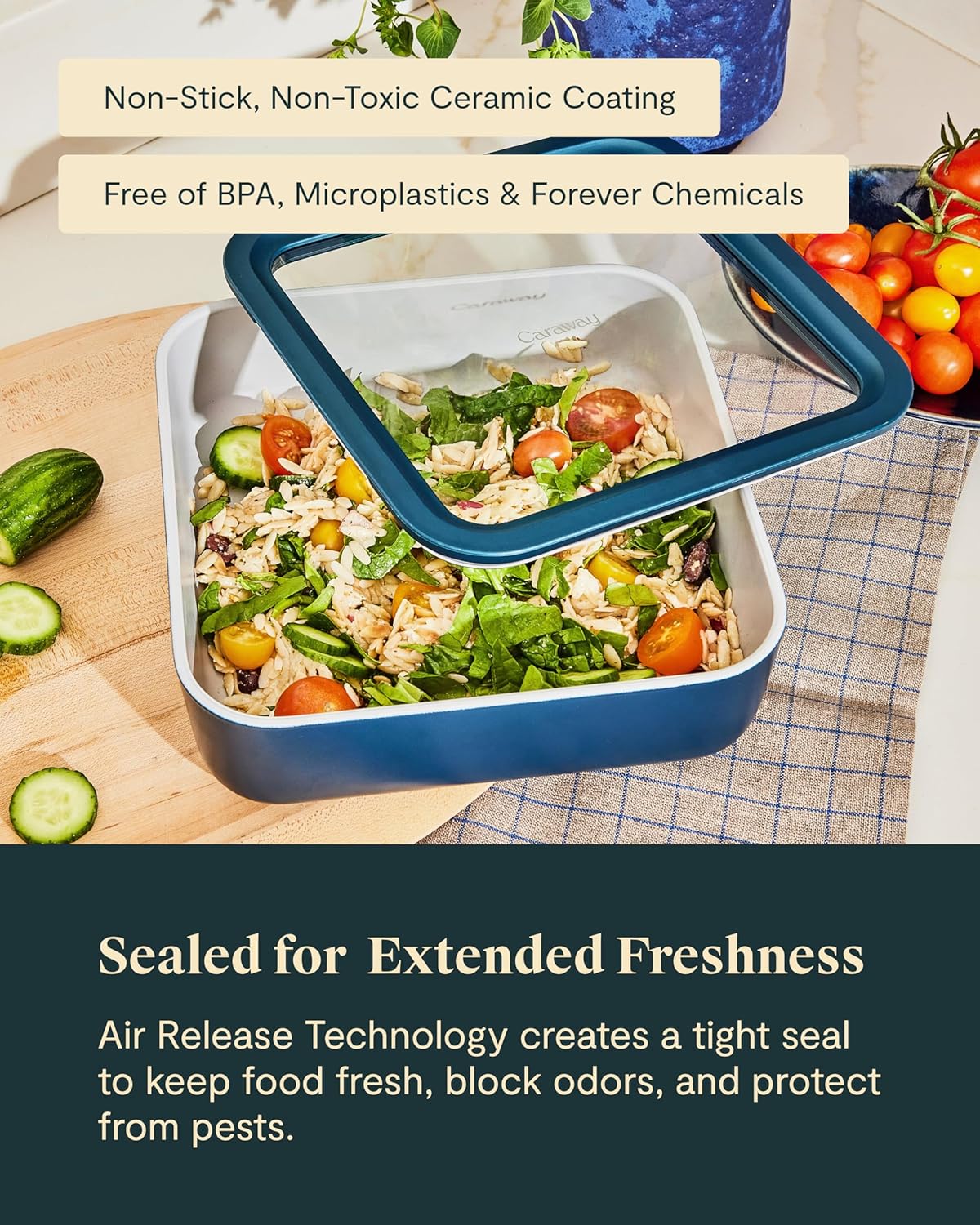 • BEAUTIFULLY DESIGNED: The cleanest, best-looking approach to storing your food. Our glass container features a clear glass lid for easy viewing Each container comes in modern colors that will match with your entire Caraway collection.
