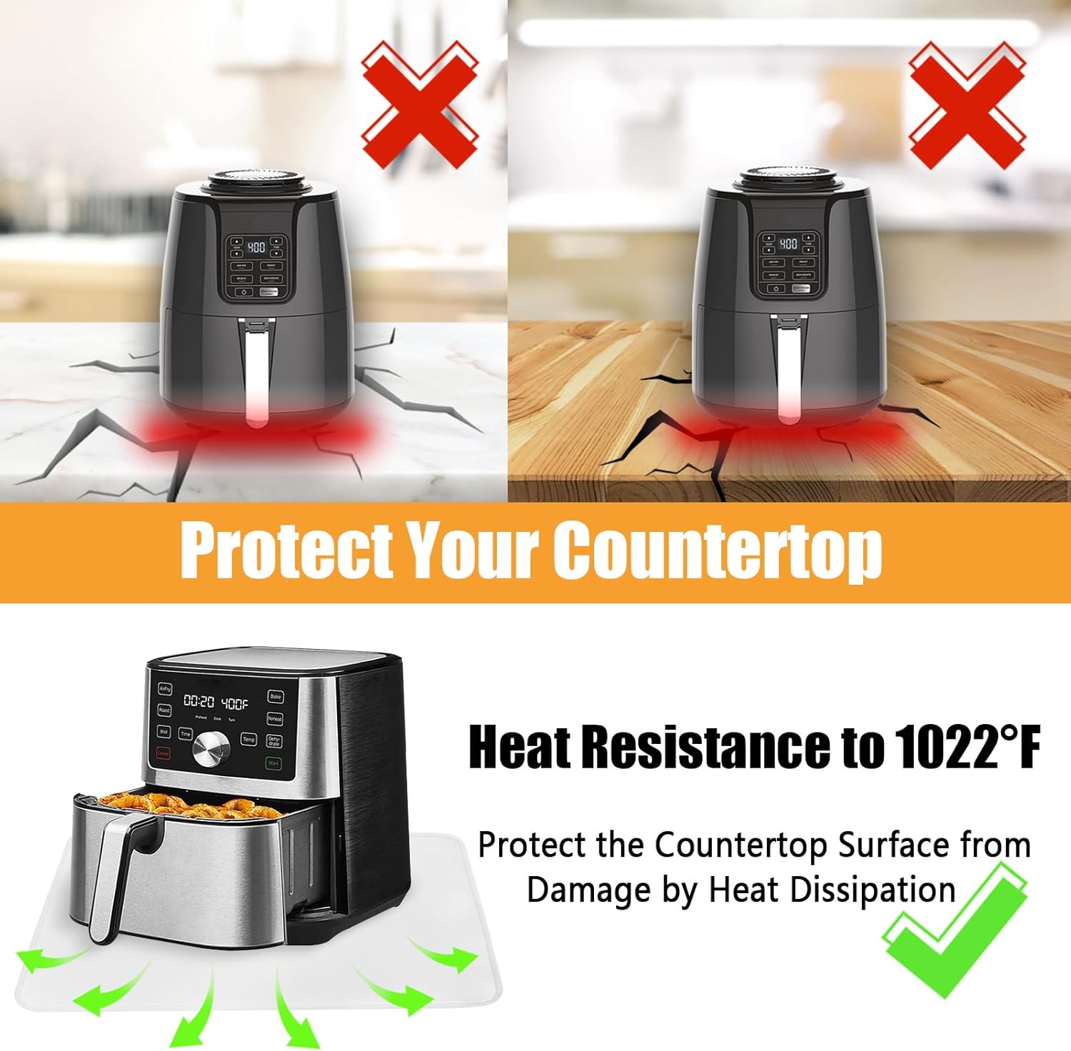 • 【1022℉ Fireproof】Different from other felt material mats, our heat resistant mat for air fryer is made of fiberglass, heat resistant silicone resin coated on both sides, which can provide heat resistance up to 550℃/1022℉.