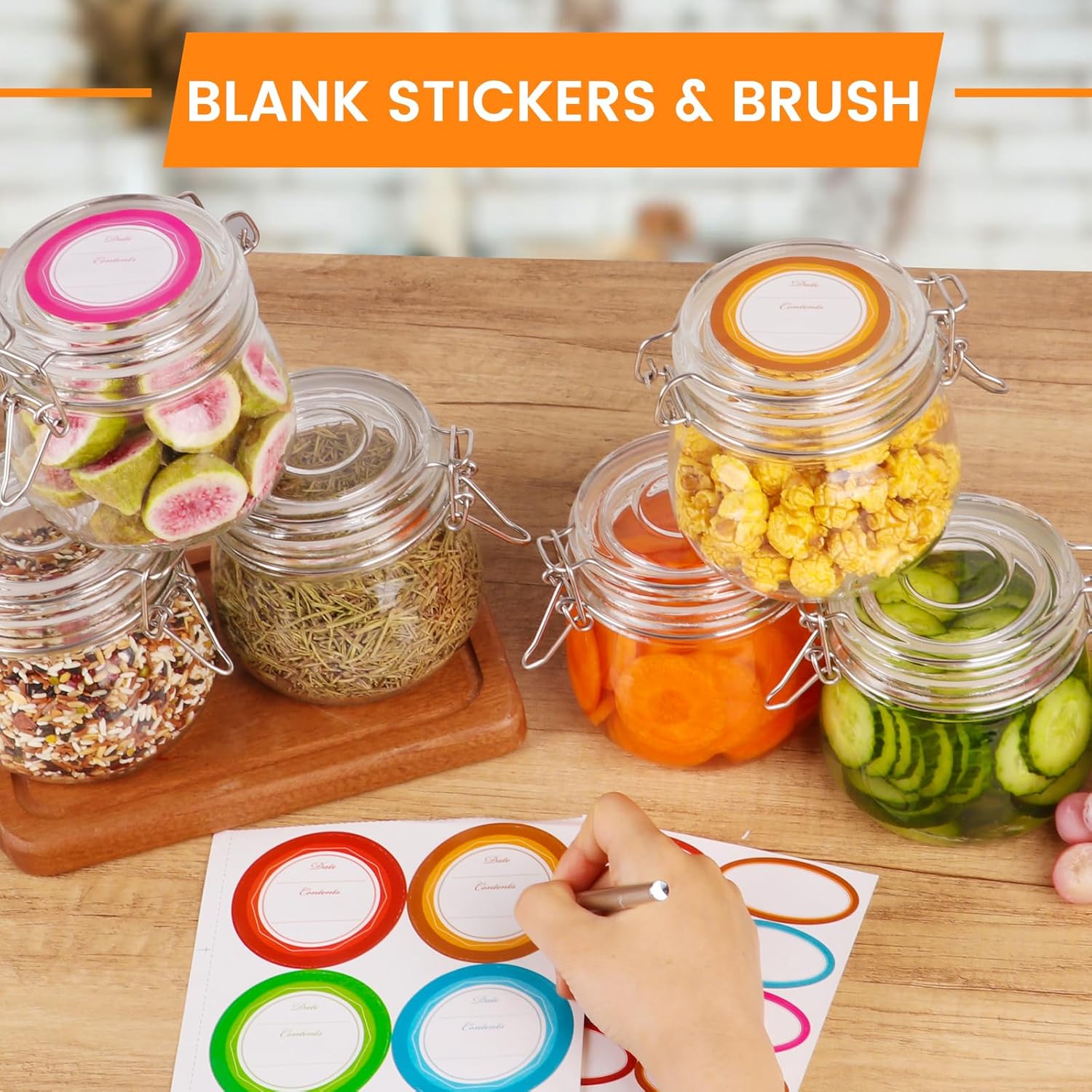 • COMPLETE STORAGE SOLUTION: Includes 6 jars + 18 decorative labels + bottle brush - backed by lifetime replacement guarantee for worry-free purchase