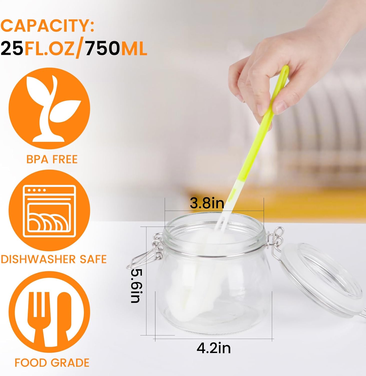 • SPACIOUS & PRACTICAL DESIGN: Measuring 25fl.oz/750ml with 3.8" wide mouth opening, these air tight glass storage jars effortlessly hold bulk ingredients while allowing easy access for scooping and cleaning