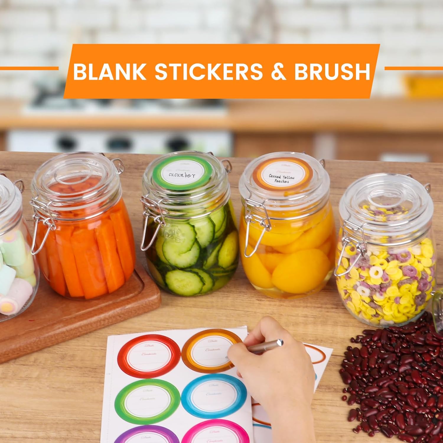 • COMPLETE STORAGE SOLUTION: Includes 6 jars + 18 decorative labels + bottle brush - backed by lifetime replacement guarantee for worry-free purchase