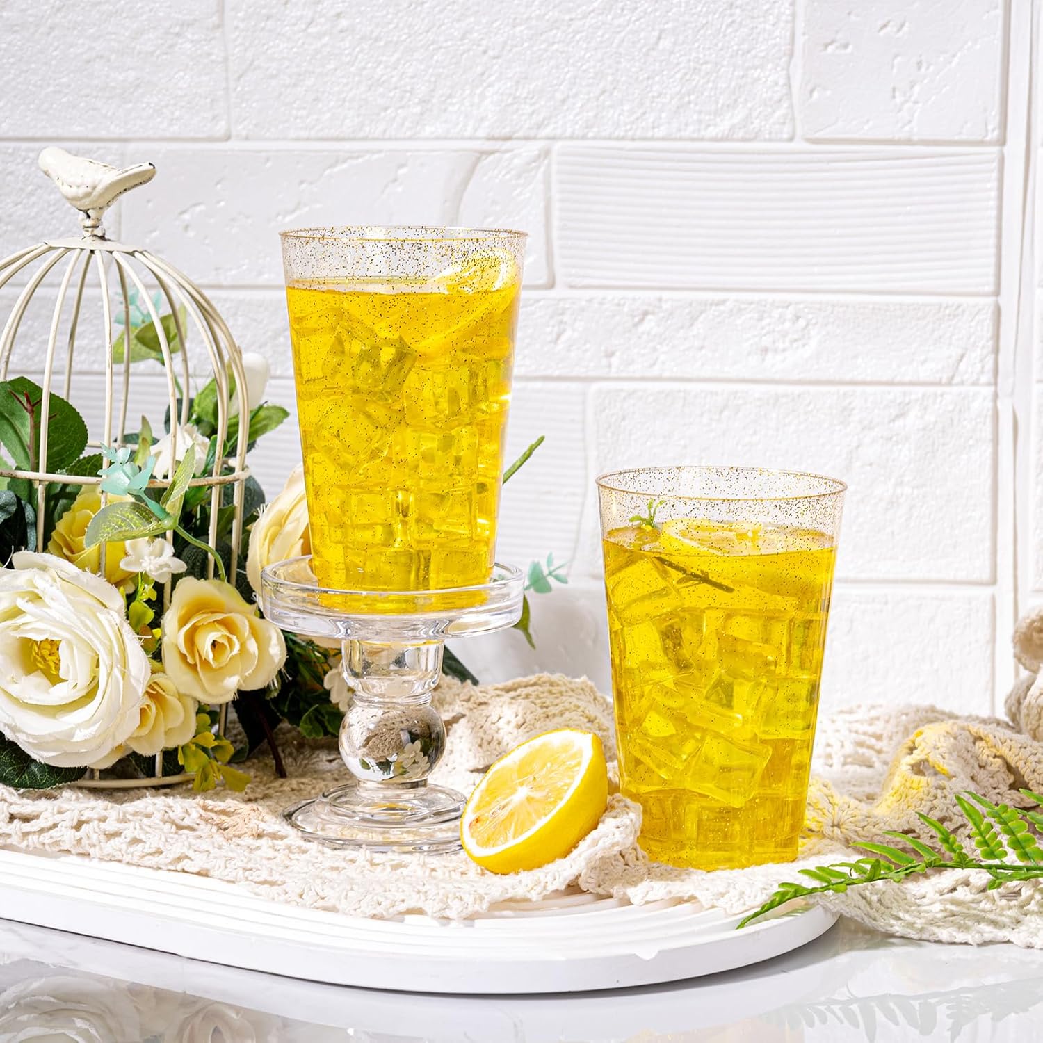 I00000 50 Pack 14 oz Gold Plastic Cups, Disposable Tumblers Gold Glitter Plastic Cups, Disposable Wine Glasses Cocktail Glasses Perfect for Wedding, Mother's Day, Thanksgiving, Christmas Parties
