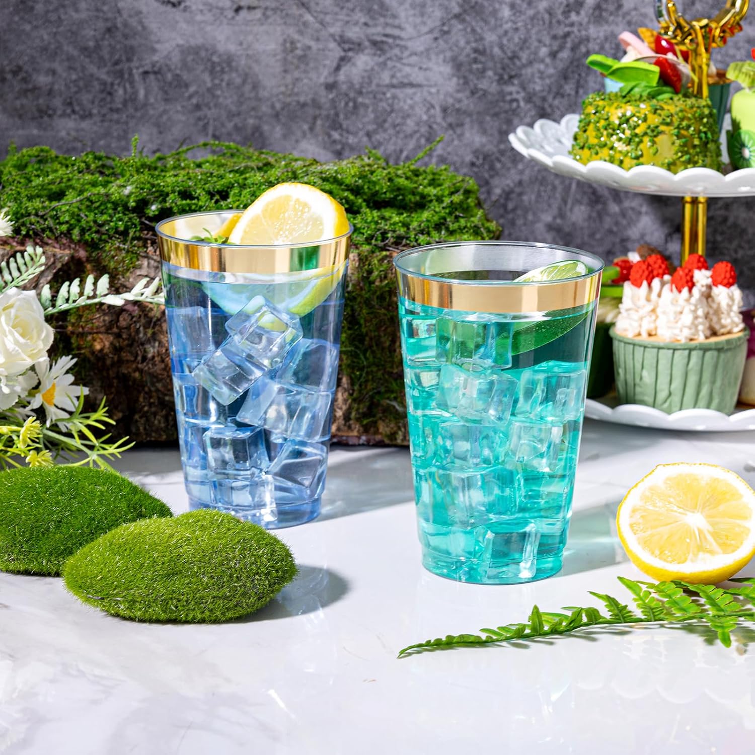 • Elegant Design: The 14 oz disposable clear plastic cups with gold trim are crystal clear all over, presenting a high-end appearance for a good clear visibility. The gold appearance and luster make these gold disposable cups look more upscale in any setting.