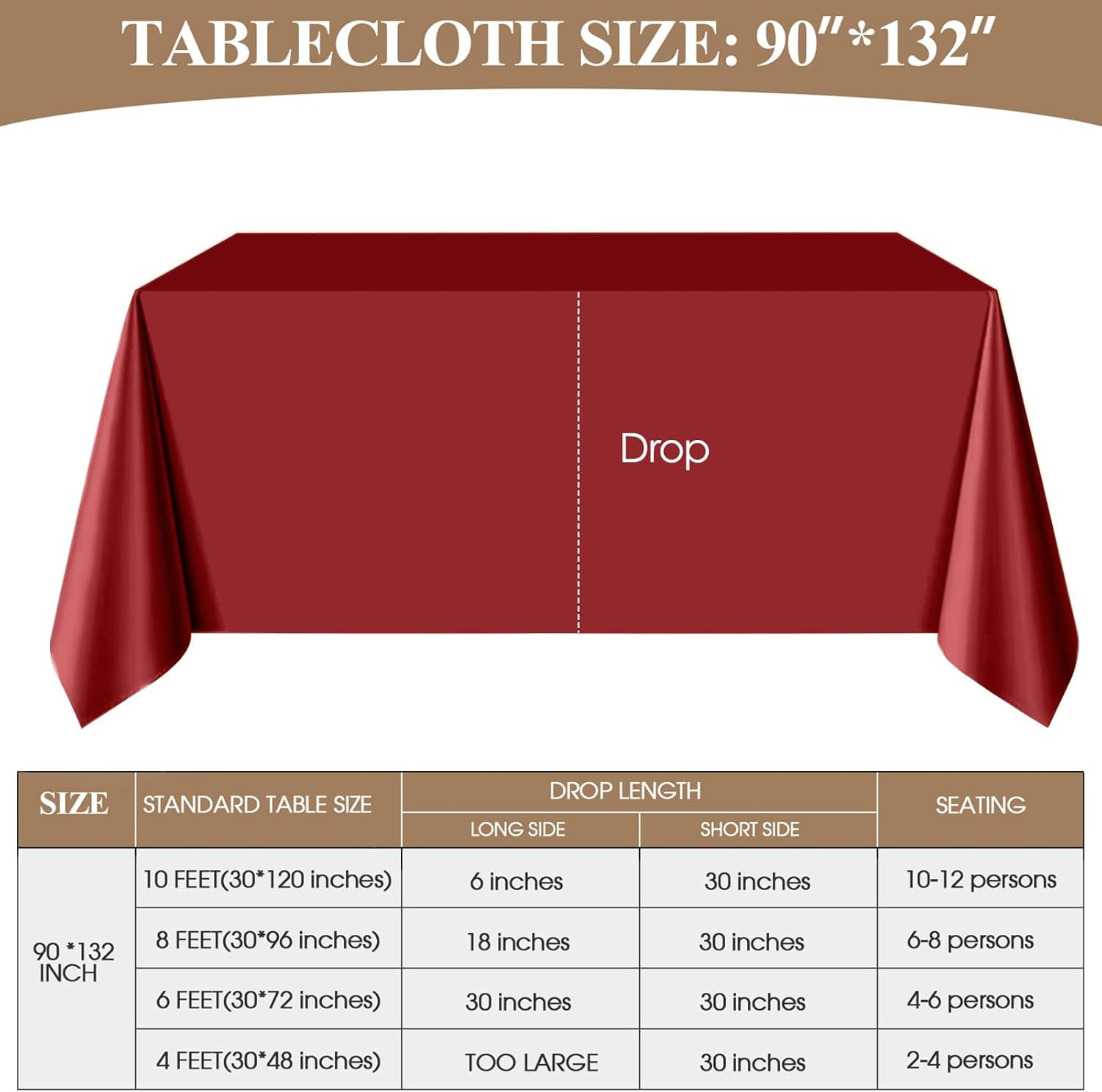 • Suitable Size: This 90*132 inch tablecloth from Aocoz is suitable for rectangular tables of 6ft and 8ft, please carefully measure the size of your table before purchasing to avoid buying an unsuitable tablecloth