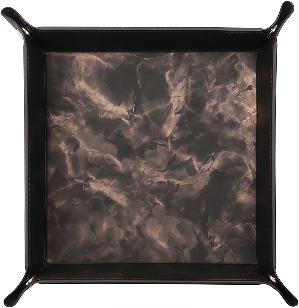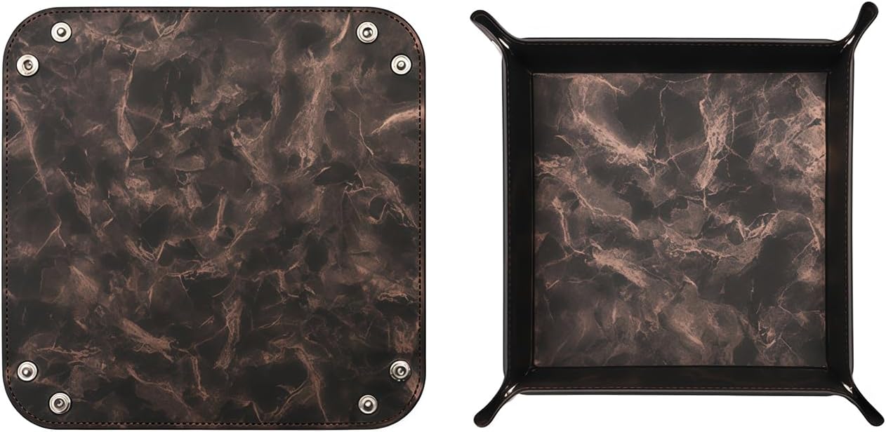 siduater Valet Tray Desktop Storage Organizer – Vegan Leather Catchall Bedside Vanity Tray Nightstand Caddy Holder for Remote Controller, Watch, Keys, Phone, Wallet, Coin, Jewelry, Marble Brown