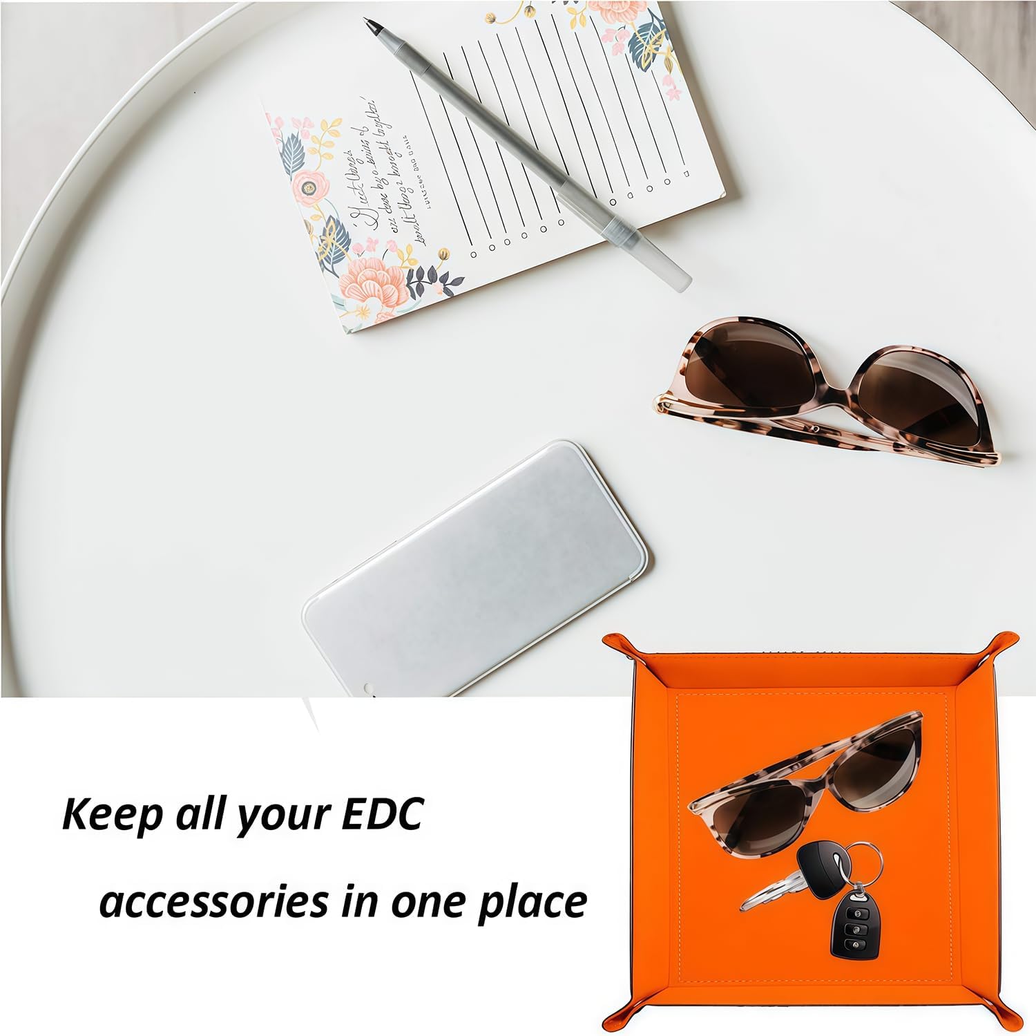 • This valet tray organizer is made from premium PU leather material, a favorable choice in terms of water-proof, scratch-proof, durable enough for a long lasting. Valet storage tray dimension: Snapped size: 5.7"L x 5.7"W x 1.5"H (14.5 x 14.5 x 4 CM ).
