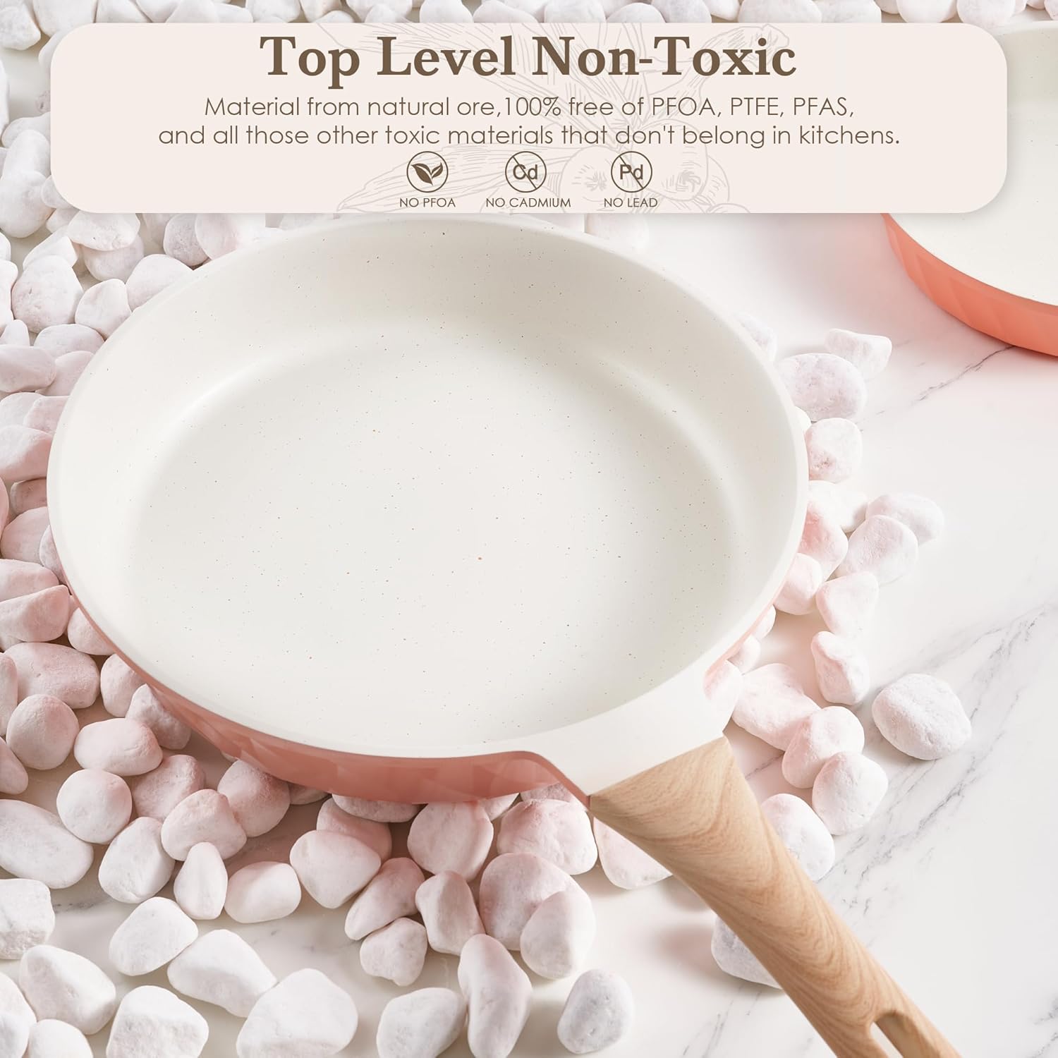 • 【Healthy & Safe Nonstick Frying Pans】SGS approved with 100% free of PFOS, PFOA, PTFE, lead, and cadmium. Less oil to reduce fat intake. Our induction cookware sets ensures your daily cooking is always safer and healthier.
