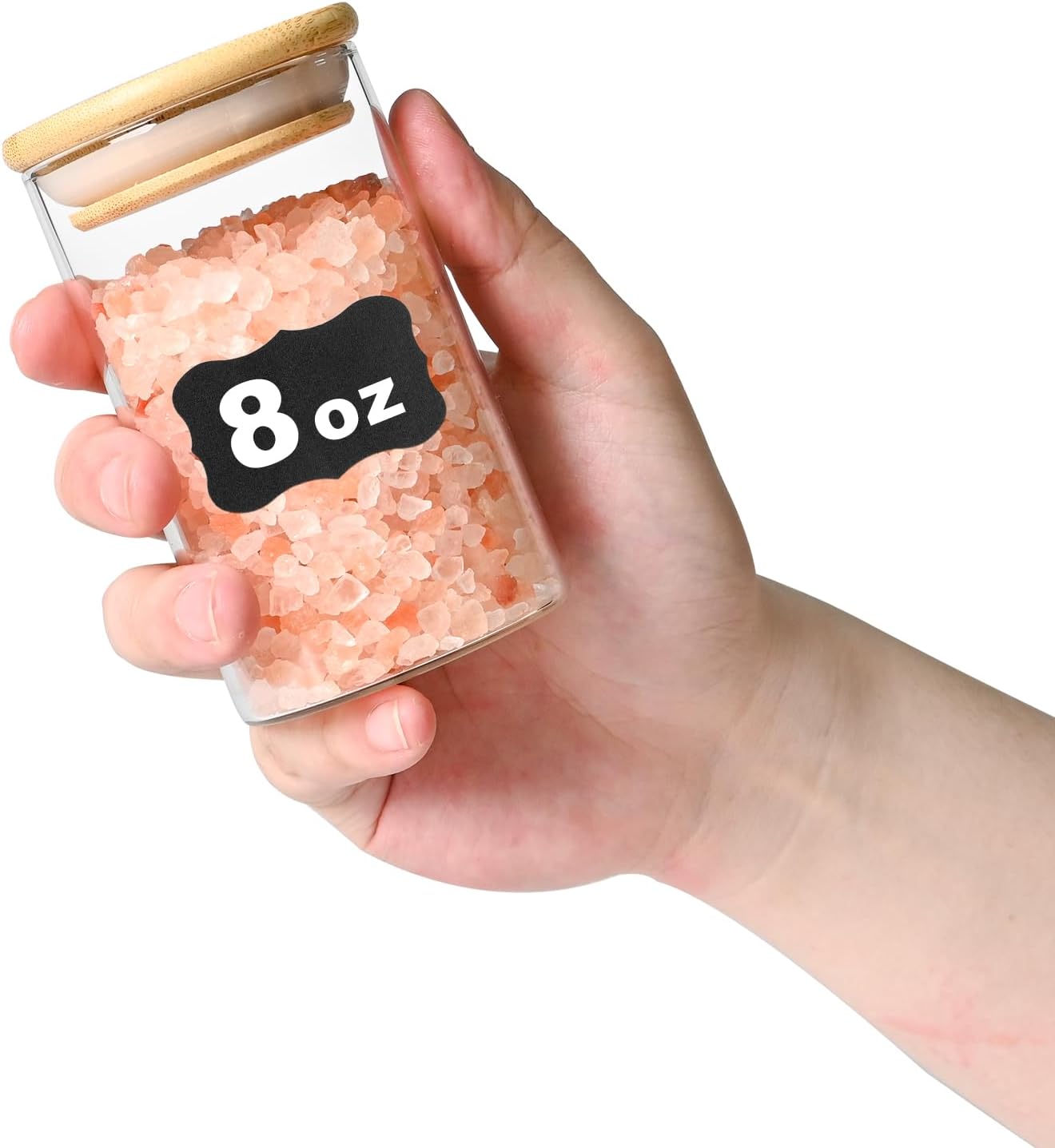• [Product details] Round glass storage jar height:4.13in. Diameter:2.36in. Capacity: 8oz(227ml). Package contains: 12pcs. 12 pieces glass pantry storage containers with same volume meet you various storage need.