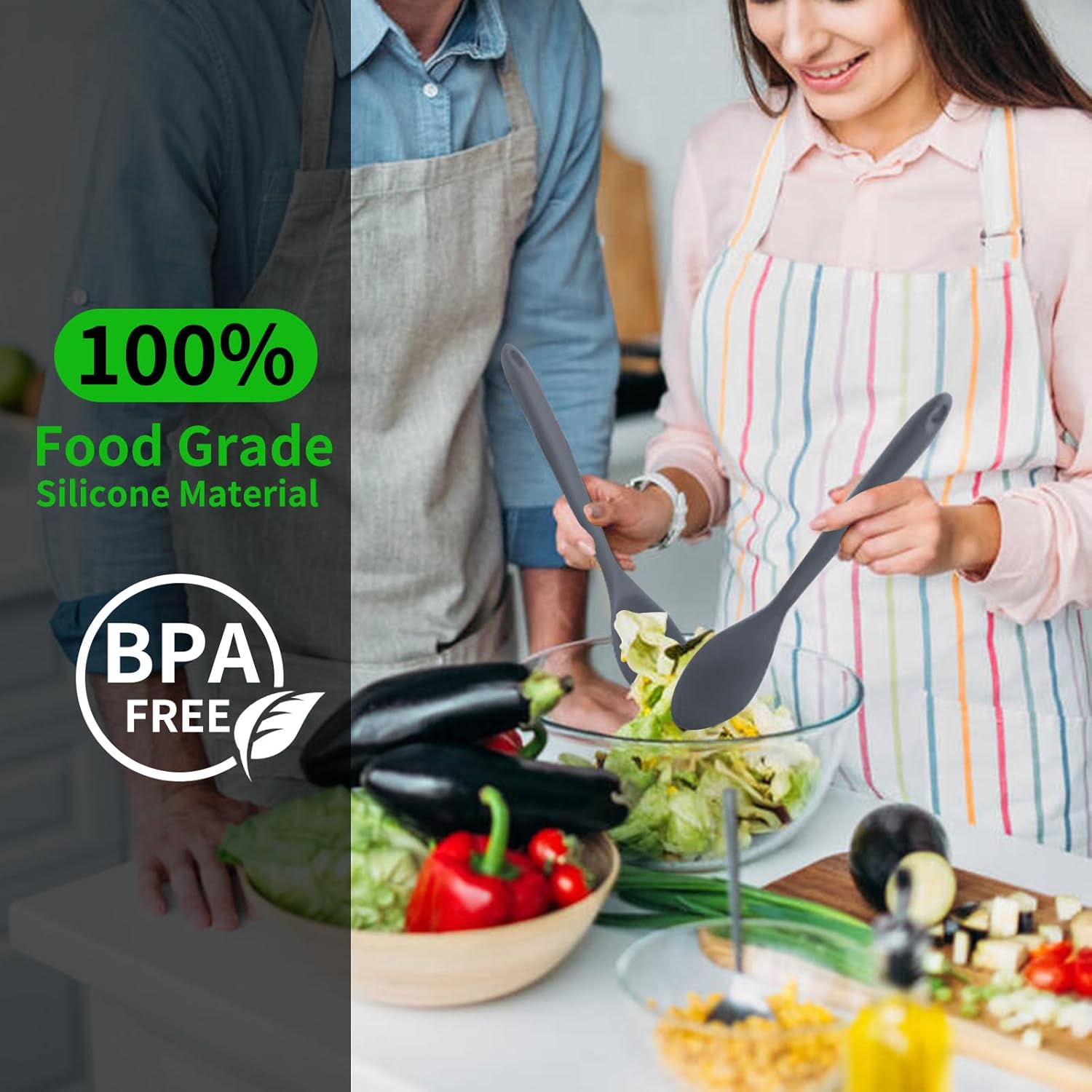 2 Pcs Silicone Nonstick Mixing Spoon, Silicone Spoons for Cooking Heat Resistant, Cooking Utensil for Kitchen Cooking Baking Stirring Serving (Grey)